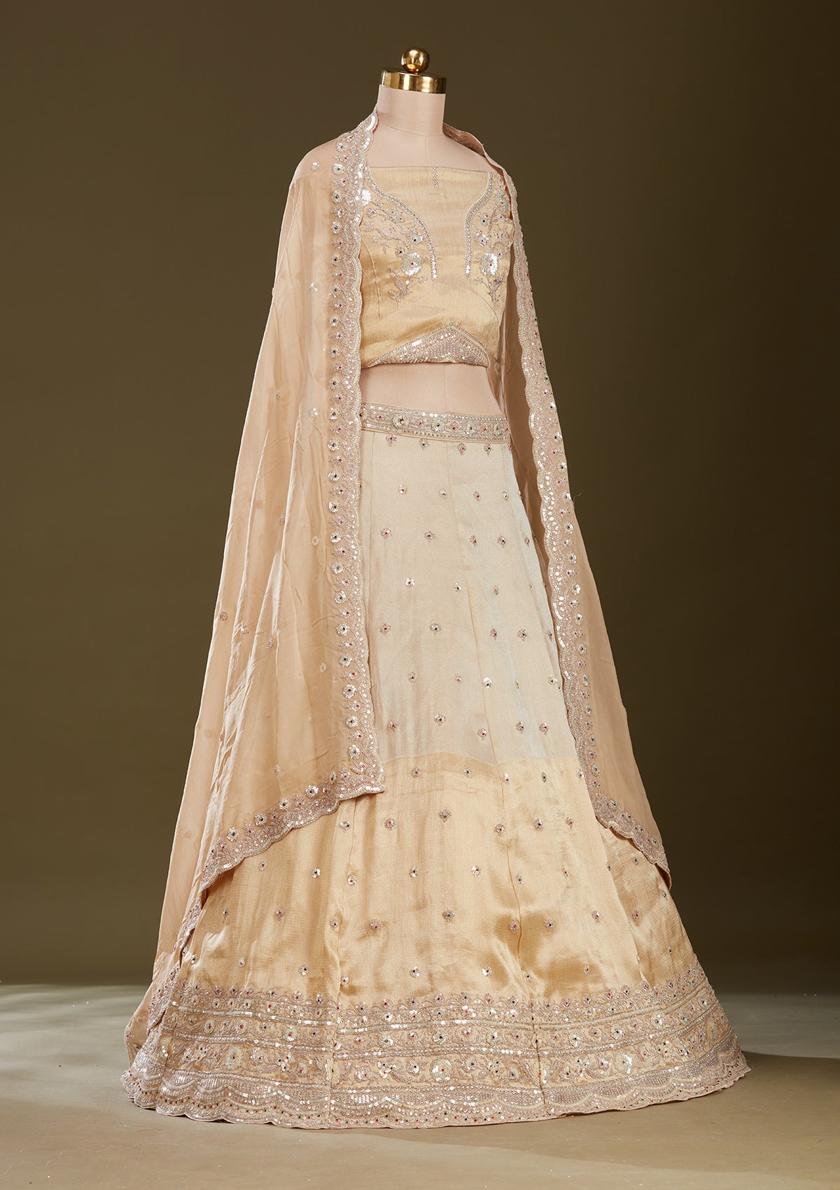 Beige Stonework (Gold) Tissue Readymade Lehenga