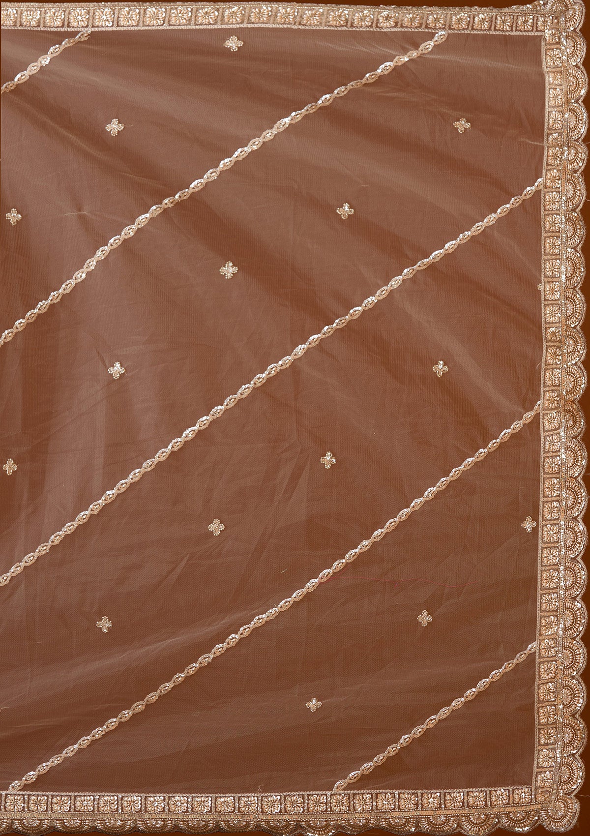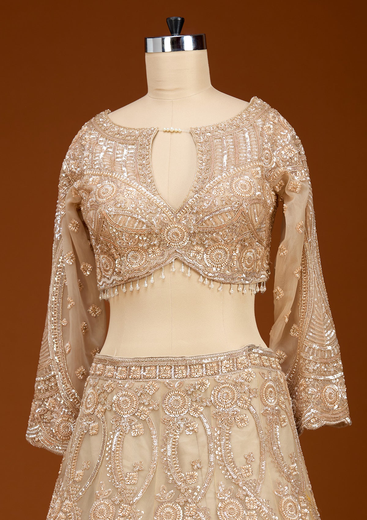 Cream Readymade Lehenga in Net fabric. The Lehenga is embellished with Cutdana embroidery. Accompanied with an Readymade blouse and dupatta. Comes with the Koskii promise of premium quality.