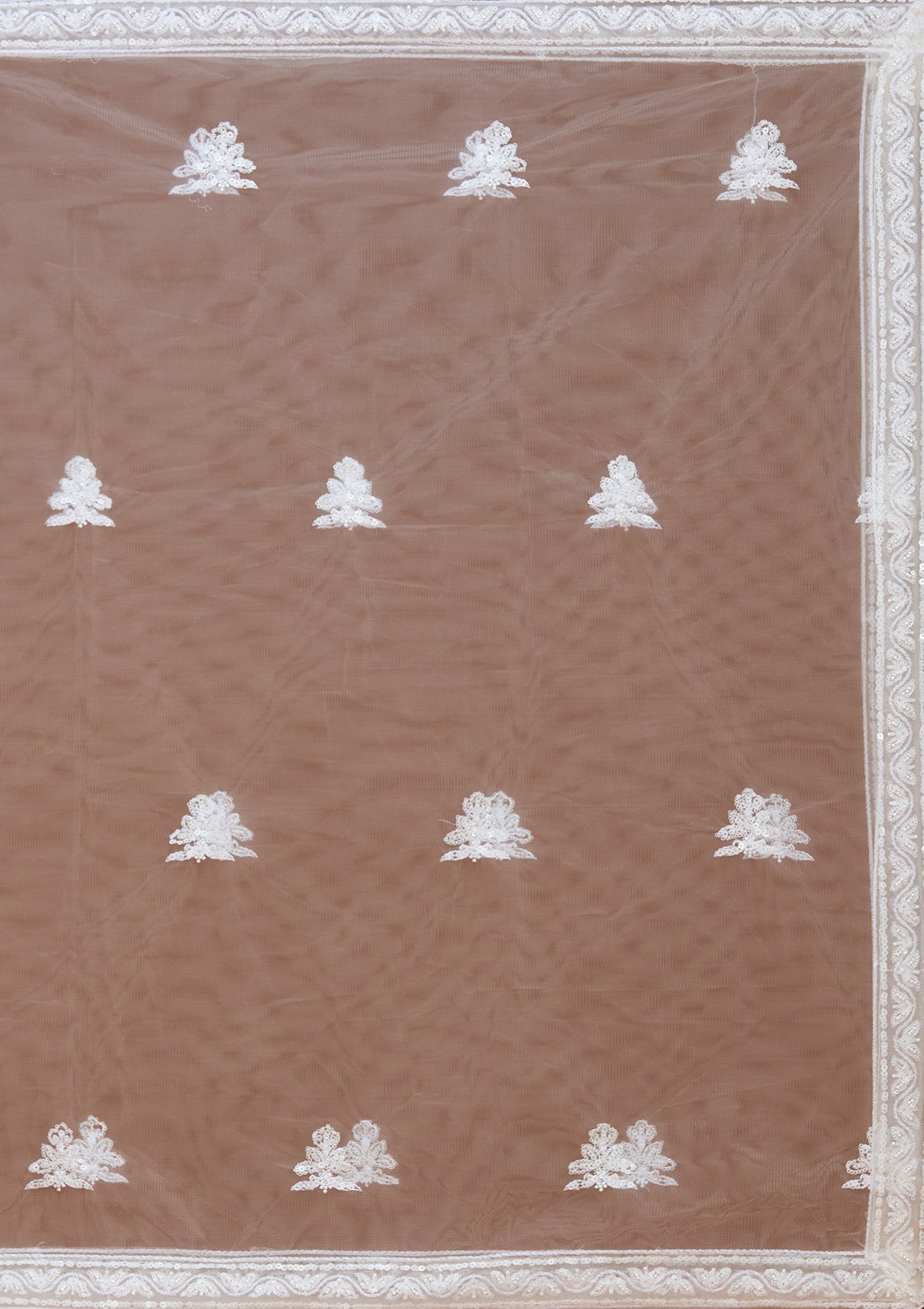 White Readymade Lehenga in Net fabric. The Lehenga is embellished with Sequins embroidery. Accompanied with an Readymade blouse and dupatta. Comes with the Koskii promise of premium quality.