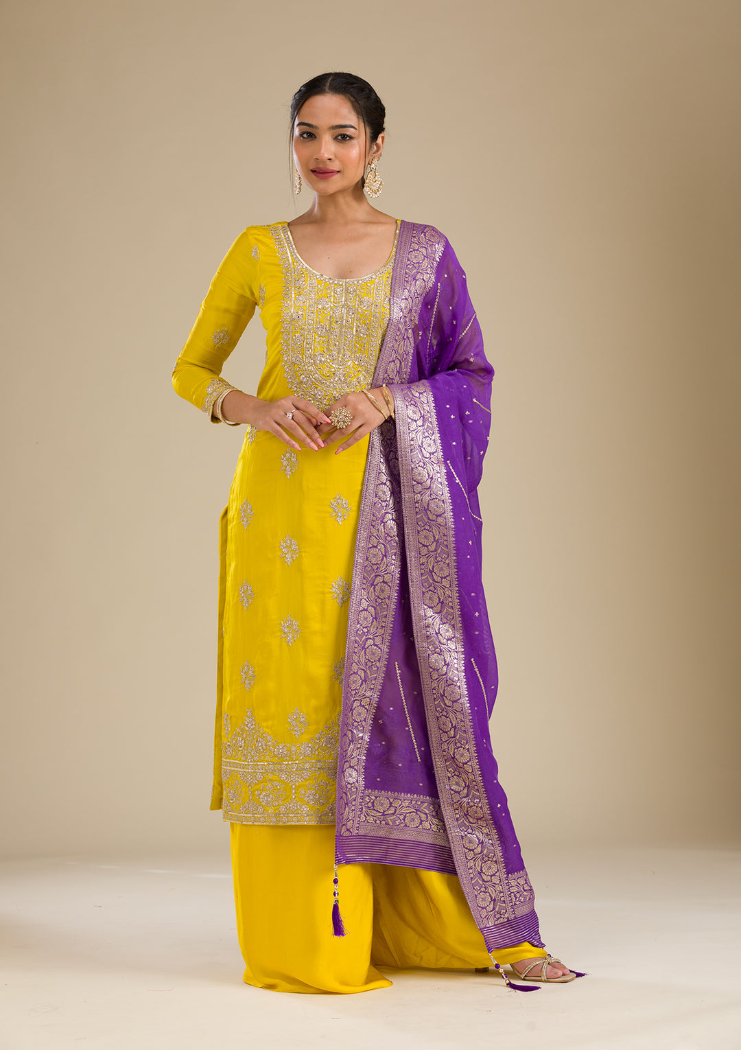 Yellow suits are for every occasion and mood! Whether you want to glam up for a festive occasion or hit the party floor, Koskii has the right collection for all. Our wide range of yellow suits is styled with matching palazzo, sharara, cigarette, and salwar pants to elevate your style game impeccably.