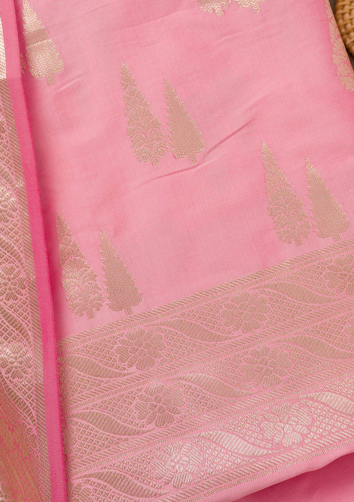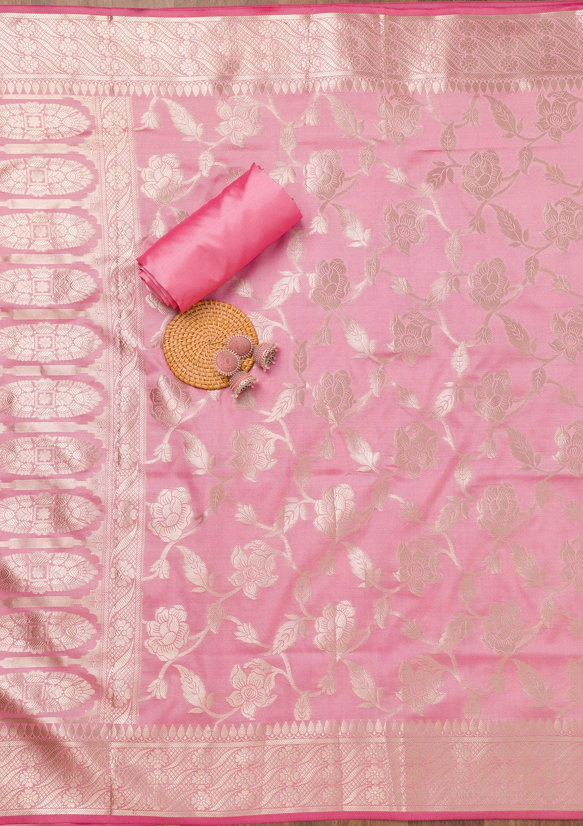 Baby Pink Zariwork Banarasi Unstitched Salwar Suit