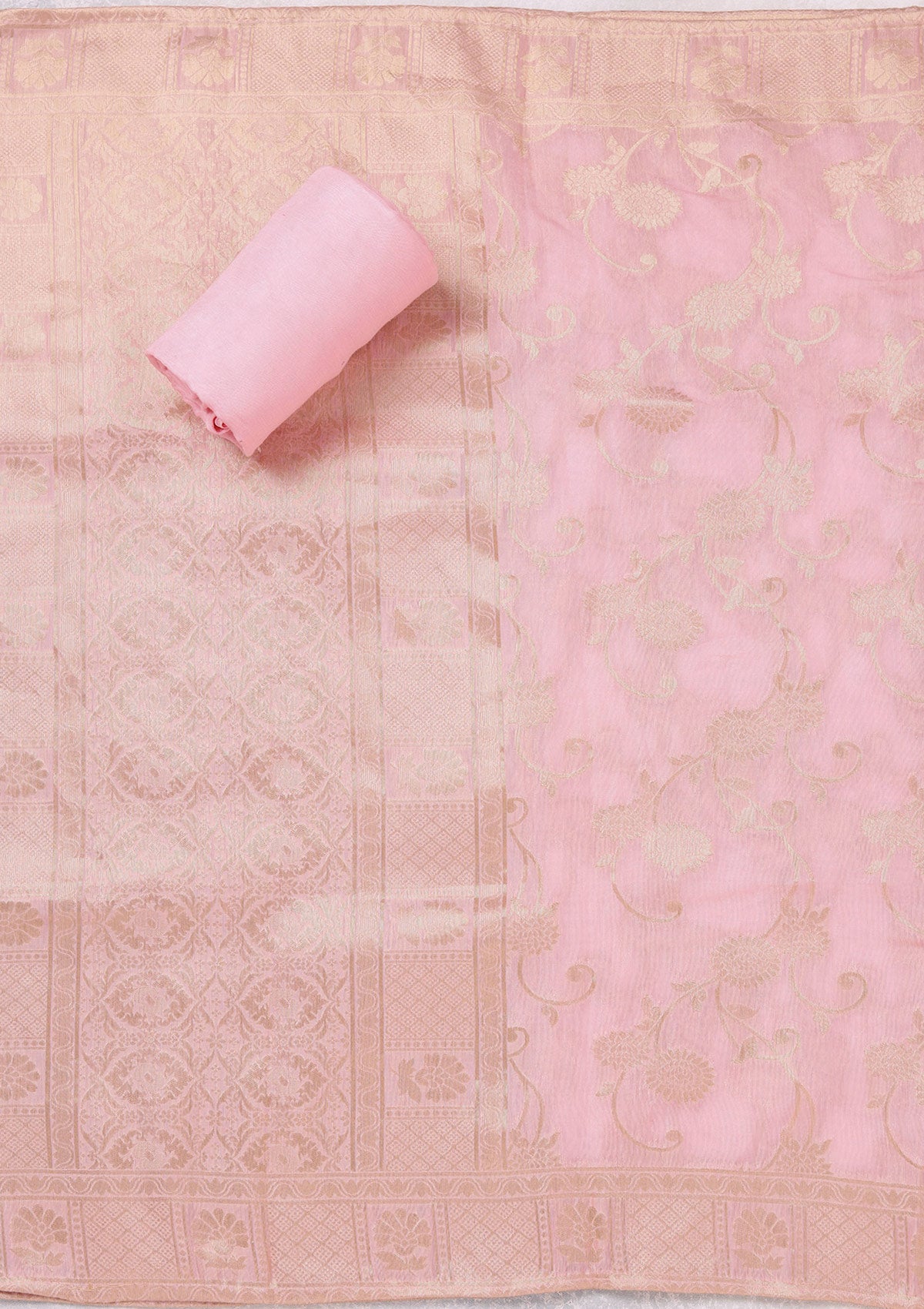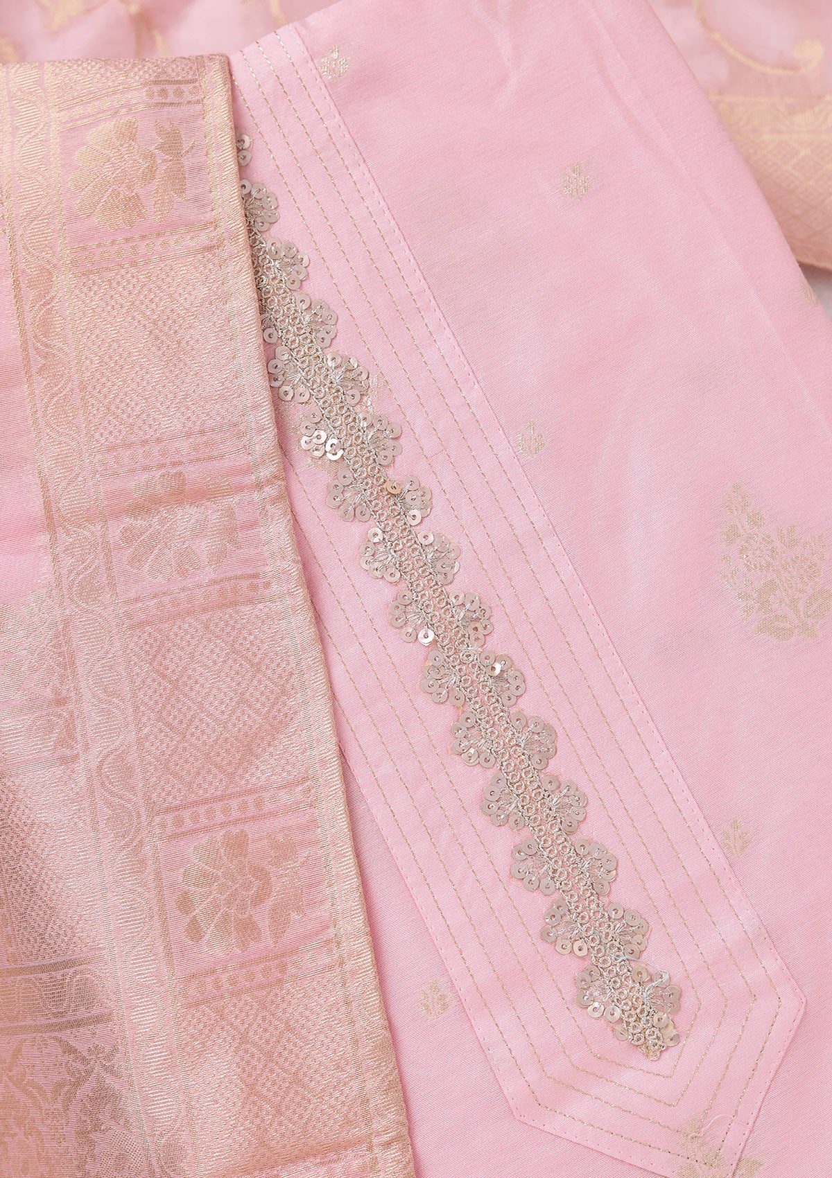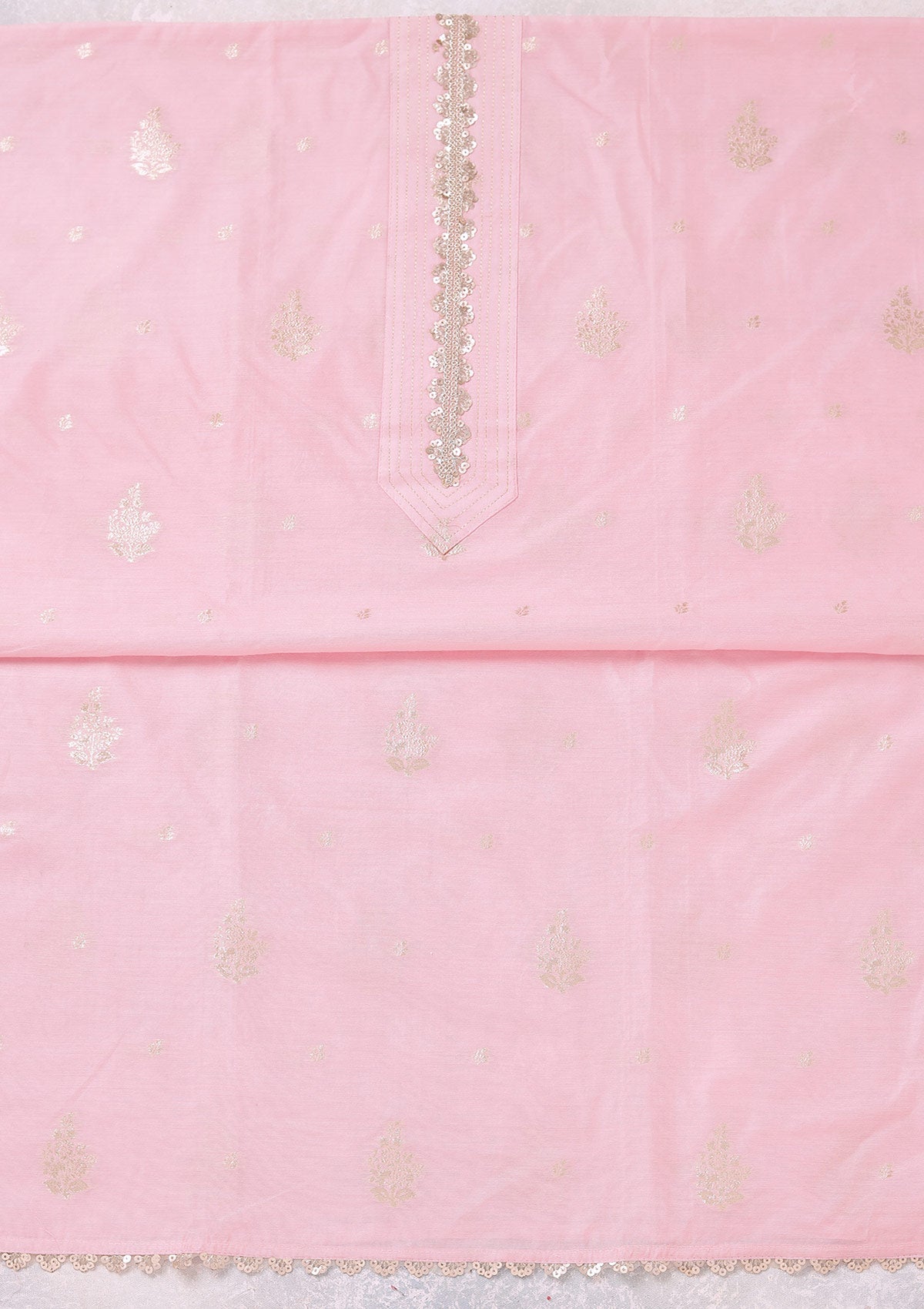 Baby Pink Zariwork (Gold) Chanderi Unstitched Salwar Suit