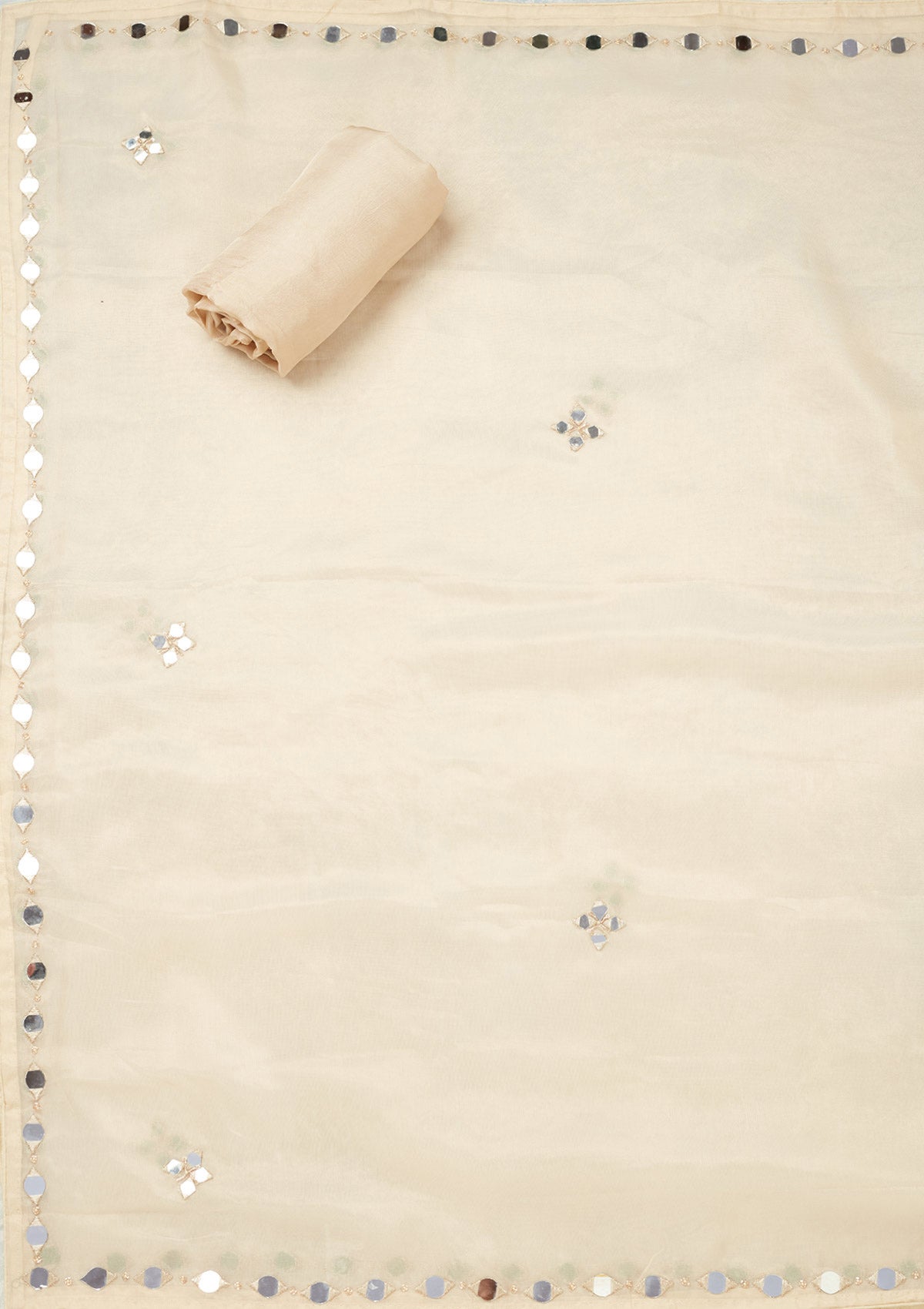 Beige Mirrorwork Tissue Unstitched Salwar Suit