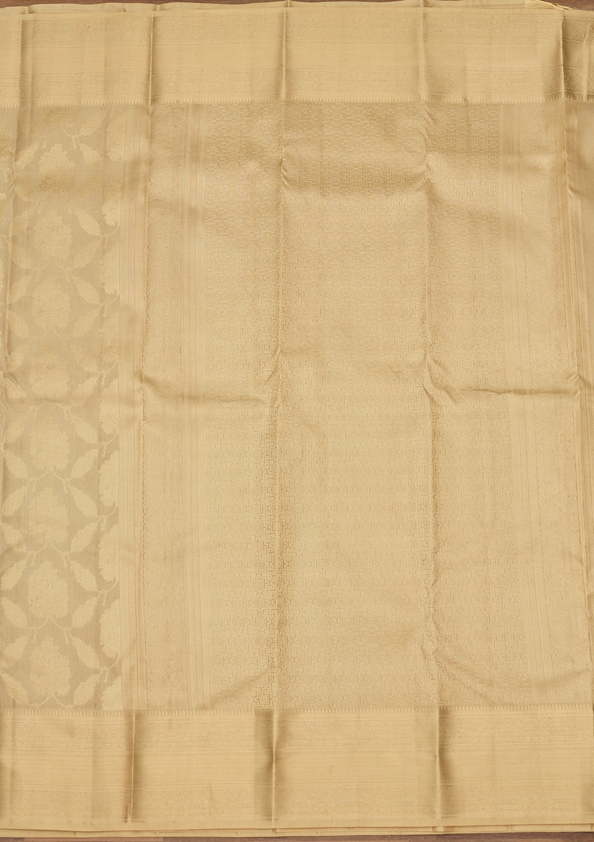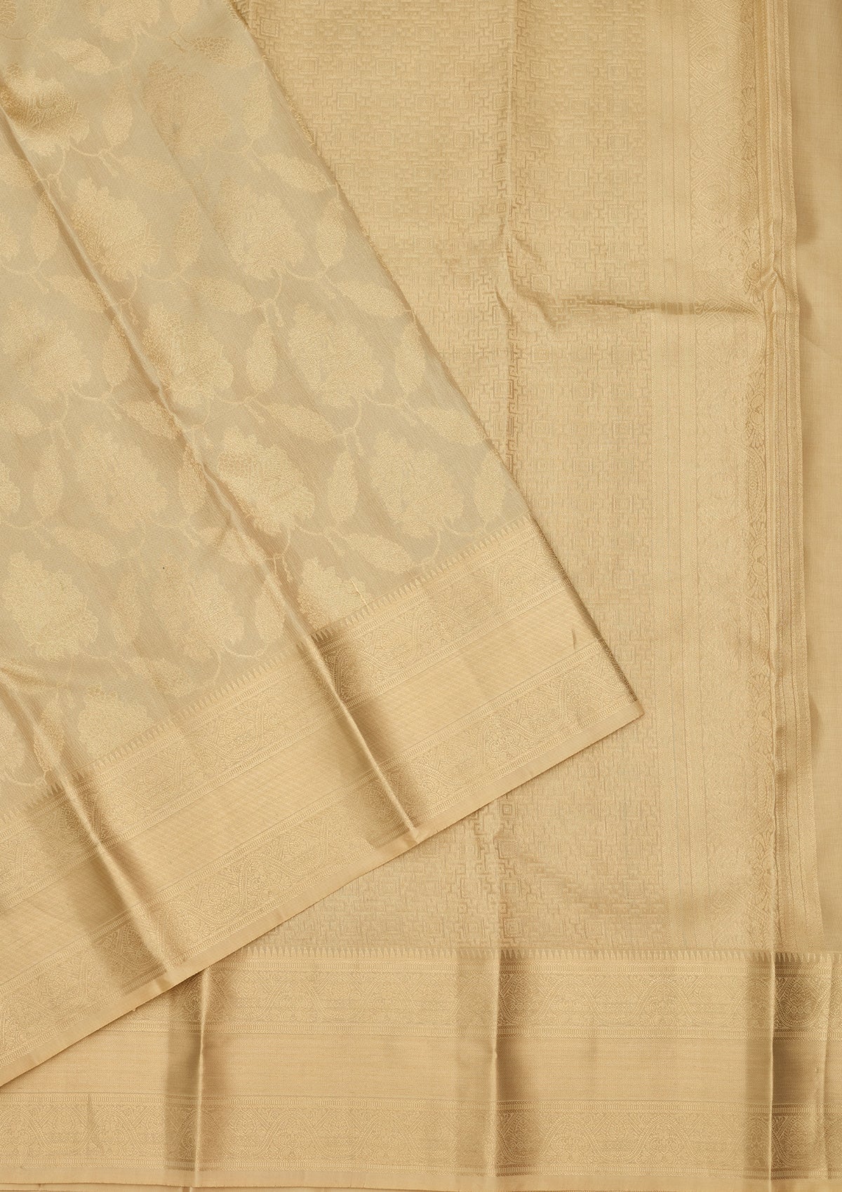 Beige Silk_Saree in Silk fabric. The Silk_Saree is elevated with Zariwork (Gold) embroidery. It comes with an Unstitched blouse. Comes with the Koskii promise of premium quality.