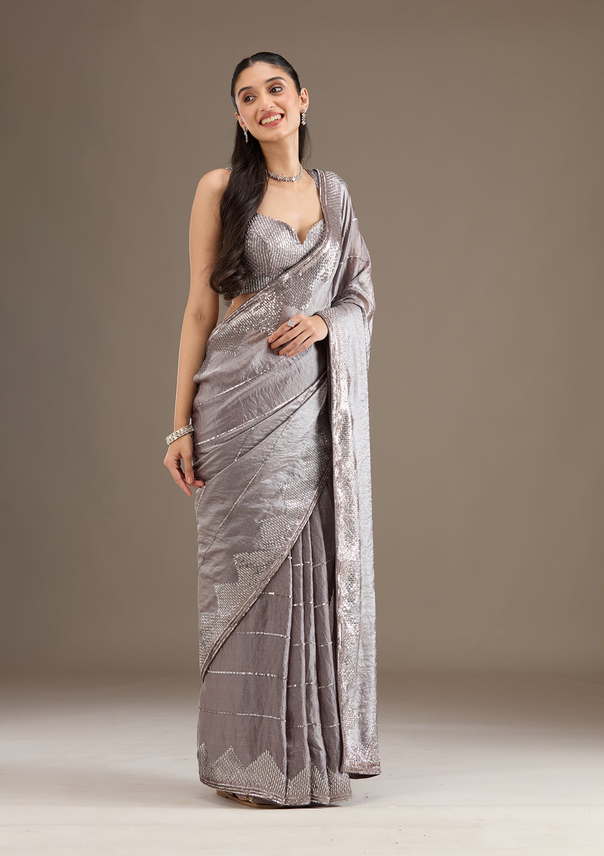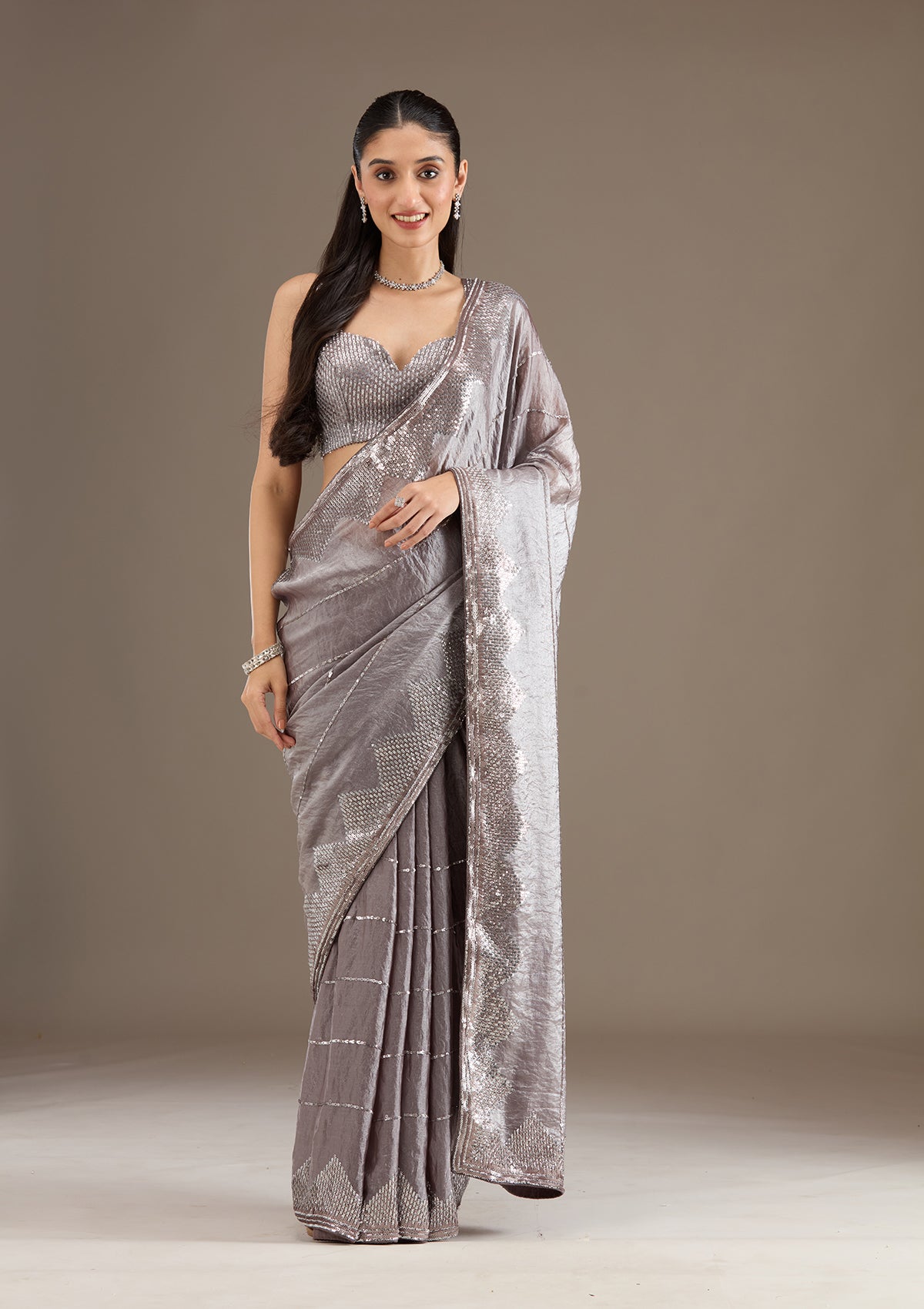 Brown Saree in Tissue fabric. The Saree is elevated with Prints . It comes with an Unstitched blouse. Comes with the Koskii promise of premium quality.