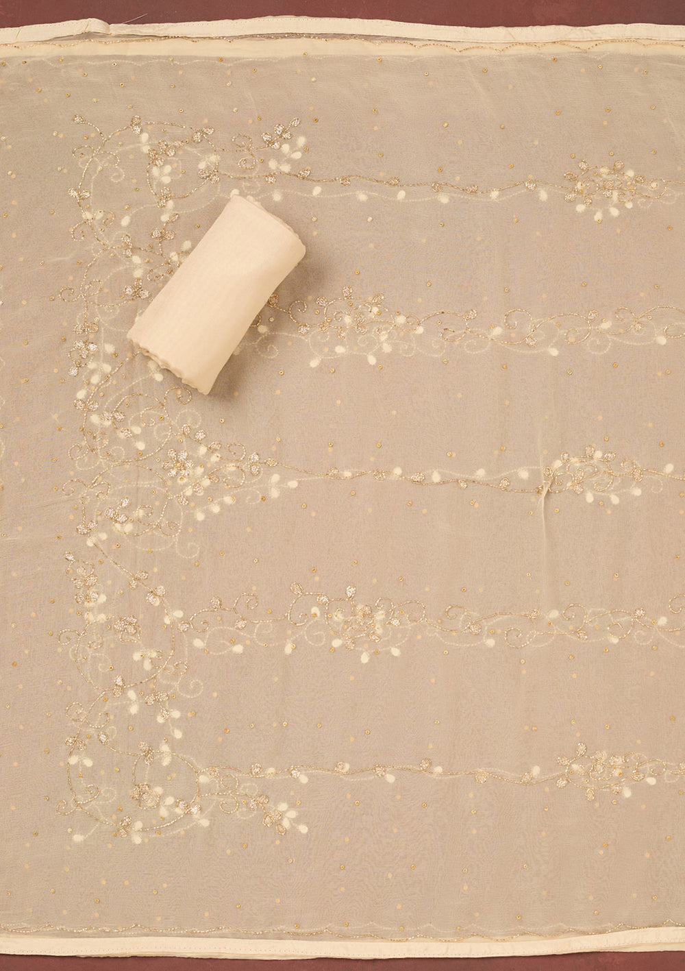 Cream Cutdana Georgette Unstitched Salwar Suit
