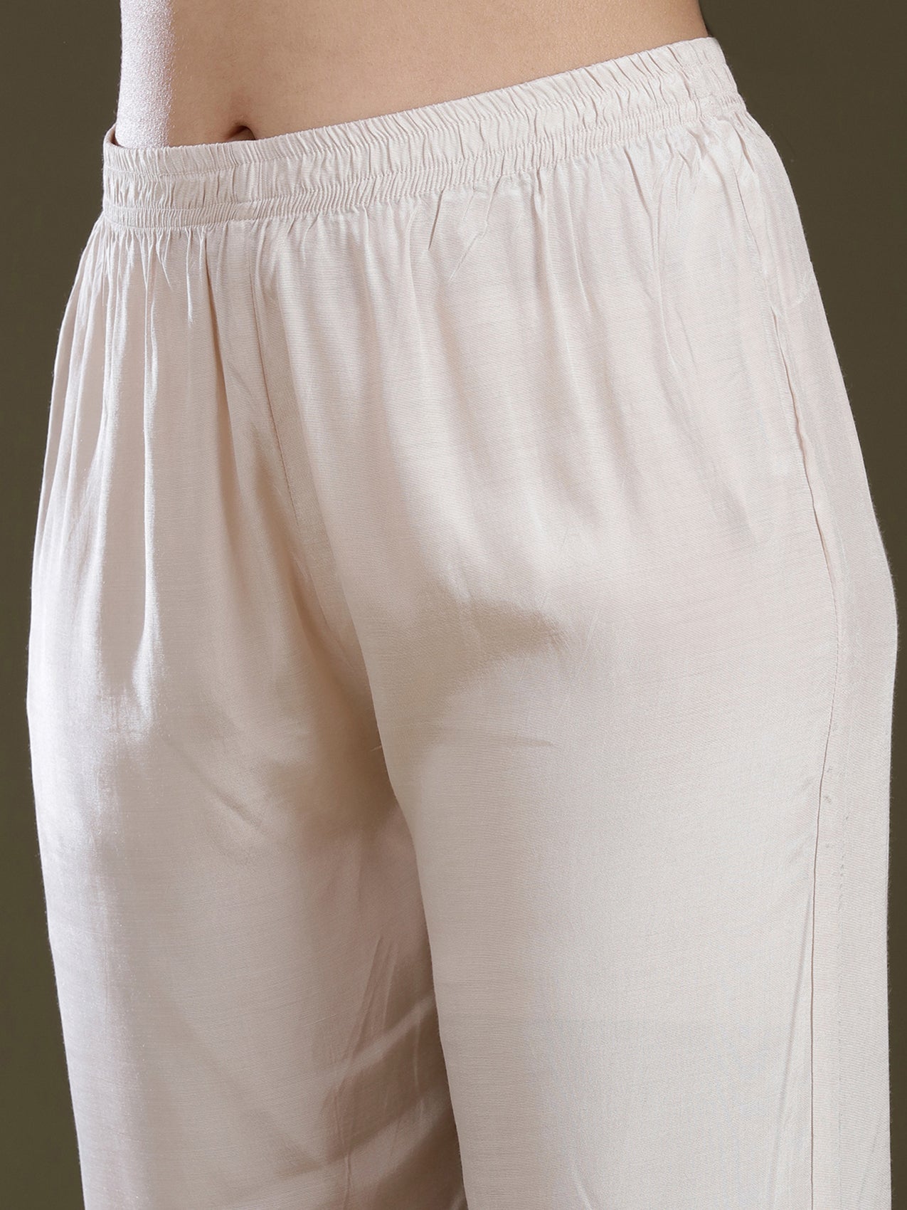 Cream Zariwork (Gold) Brocade Readymade Salwar Suit