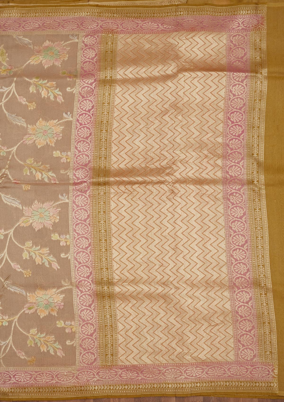 Cream Saree in Pure Silk fabric. The Saree is elevated with Zariwork embroidery. It comes with an Unstitched blouse. Comes with the Koskii promise of premium quality.