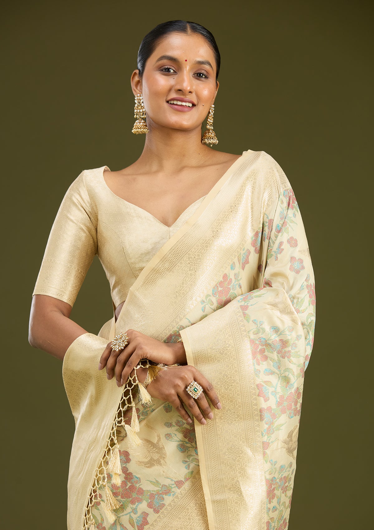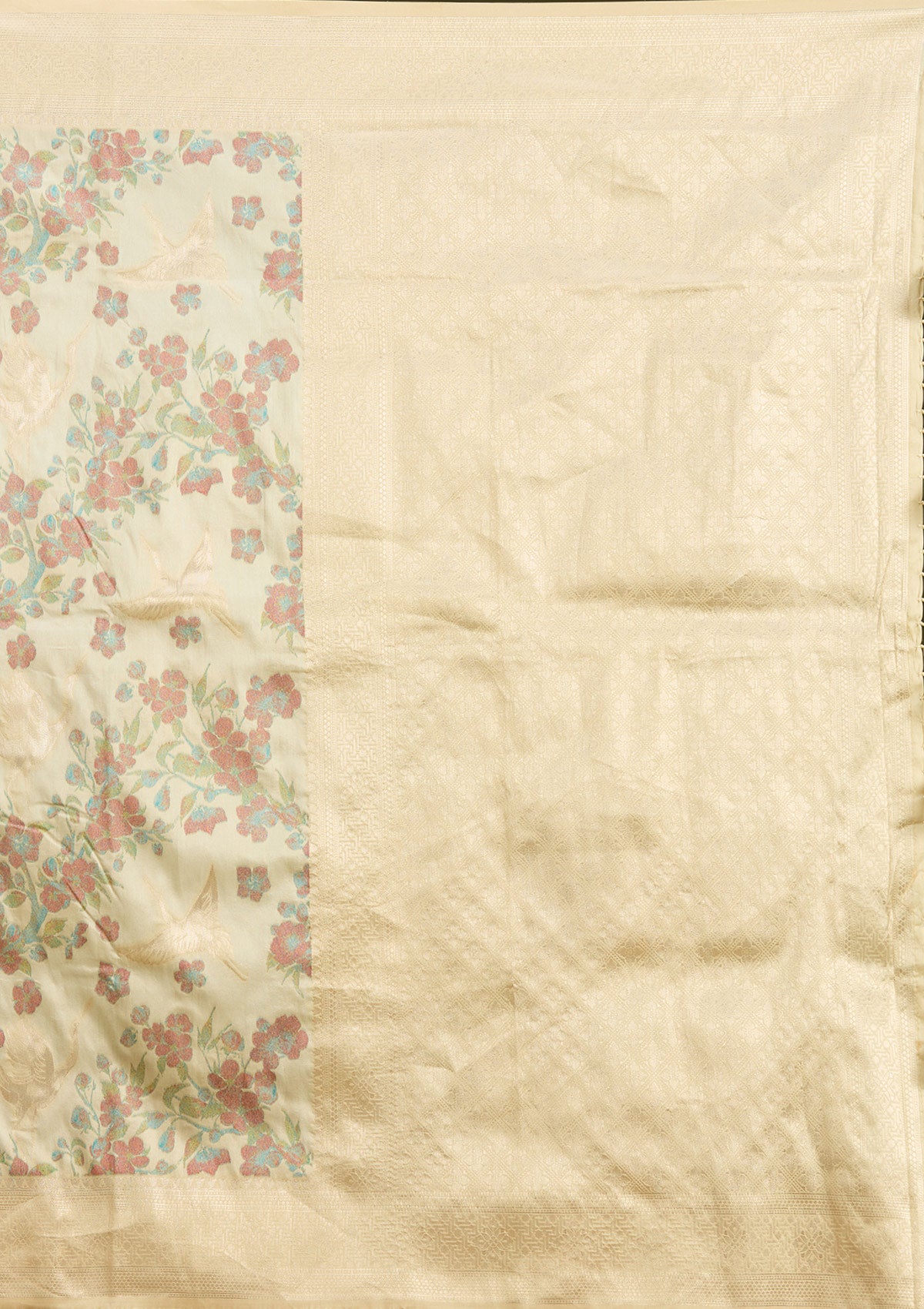 Cream Zariwork (Silver) Art Silk Silk Saree