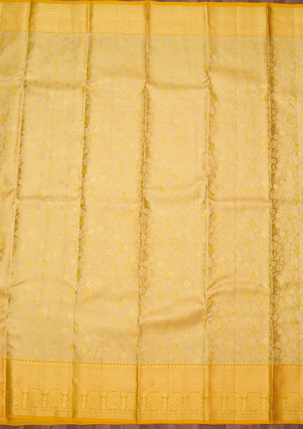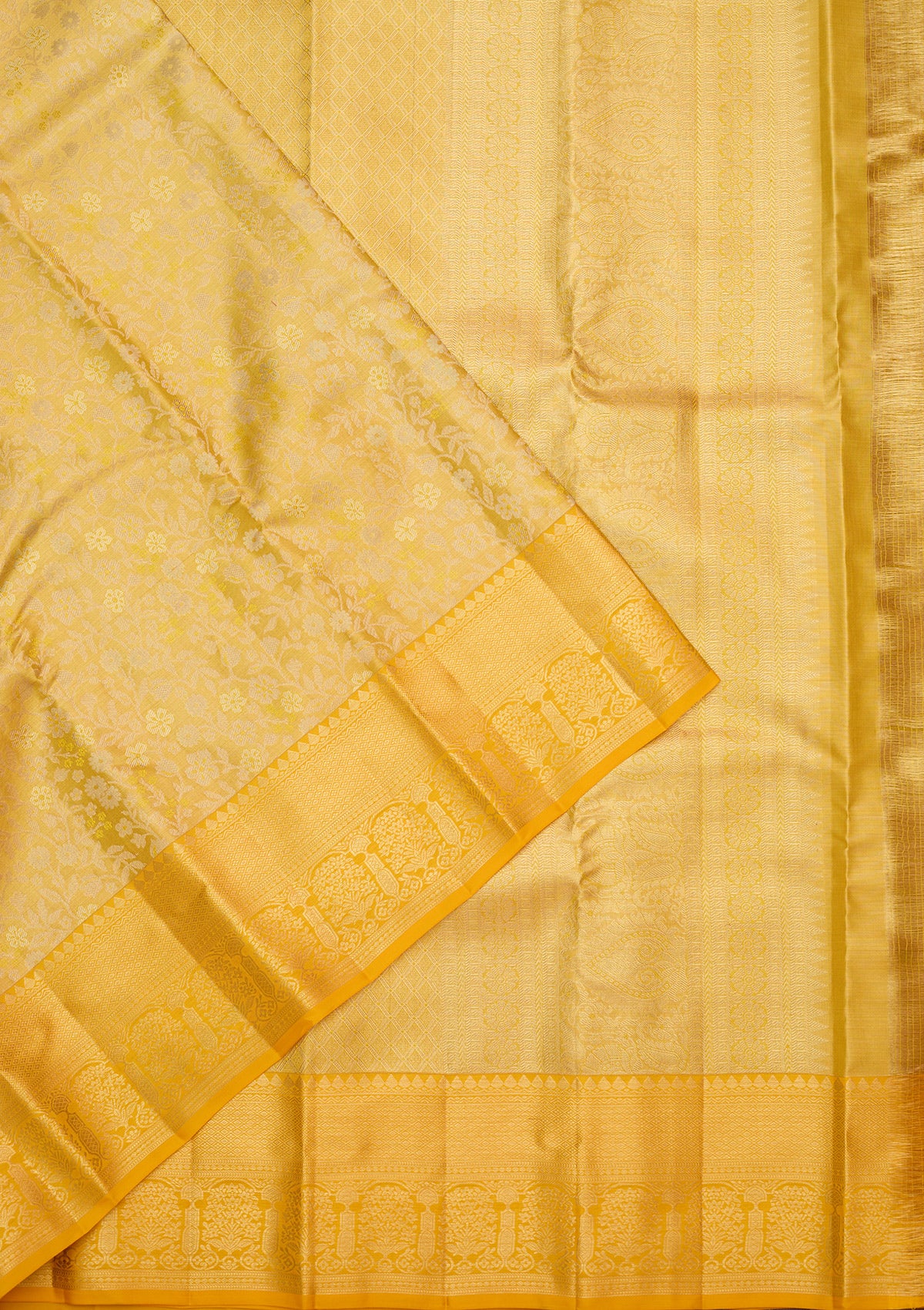 Gold Silk_Saree in Silk fabric. The Silk_Saree is elevated with Zariwork (Gold) embroidery. It comes with an Unstitched blouse. Comes with the Koskii promise of premium quality.