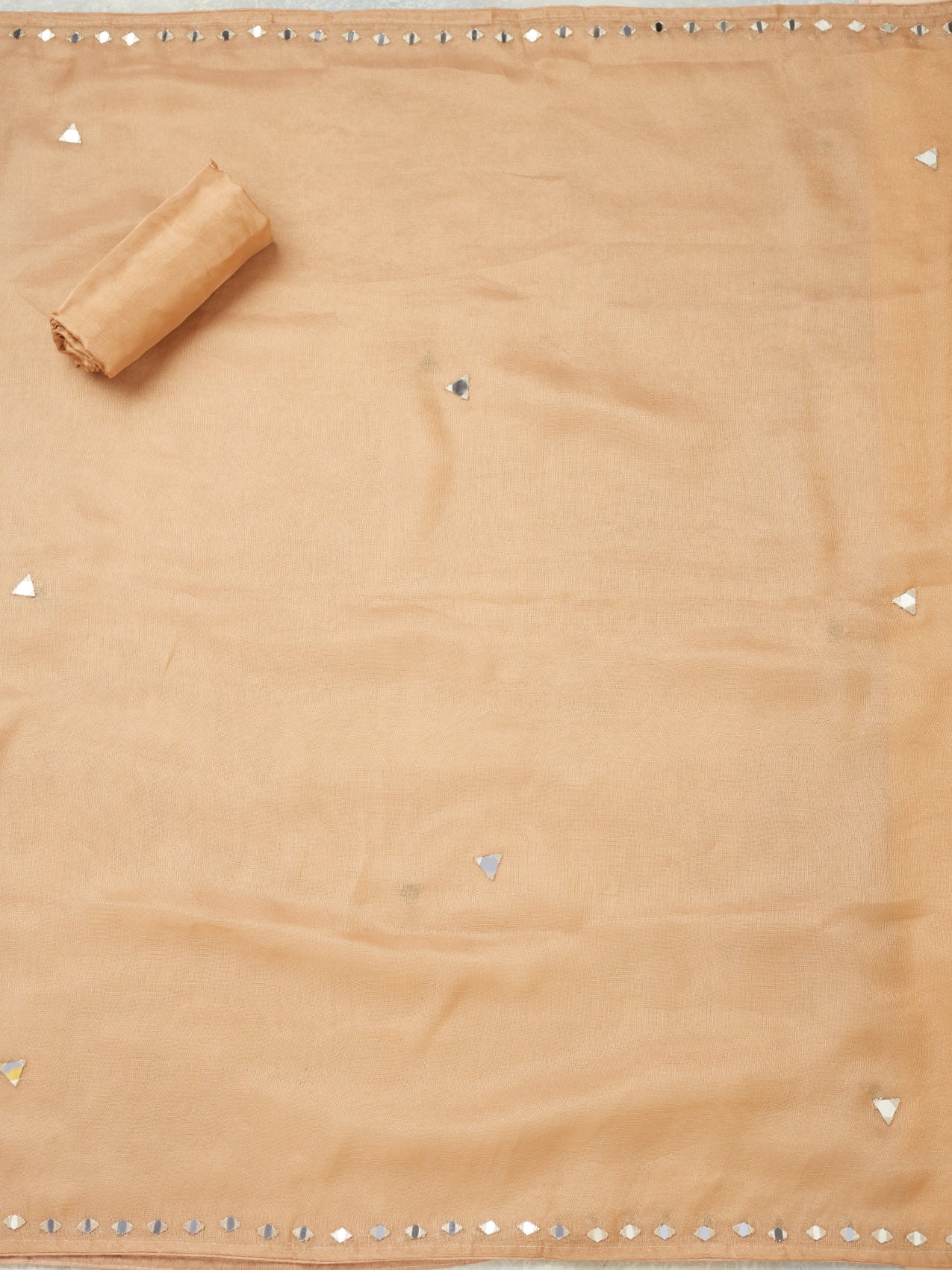 Light Brown Mirrorwork Tissue Unstitched Salwar Suit