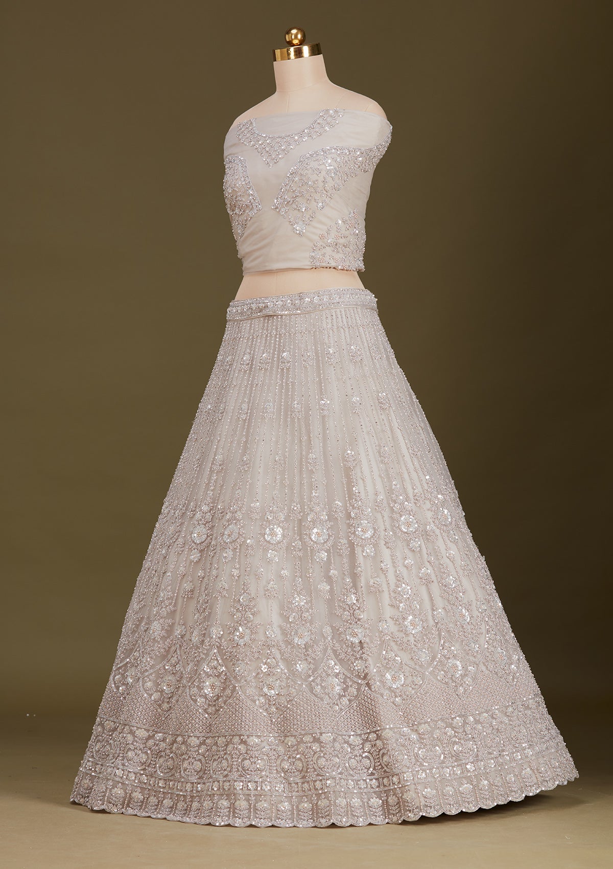 Light Grey Zariwork (Silver) Net Readymade Lehenga