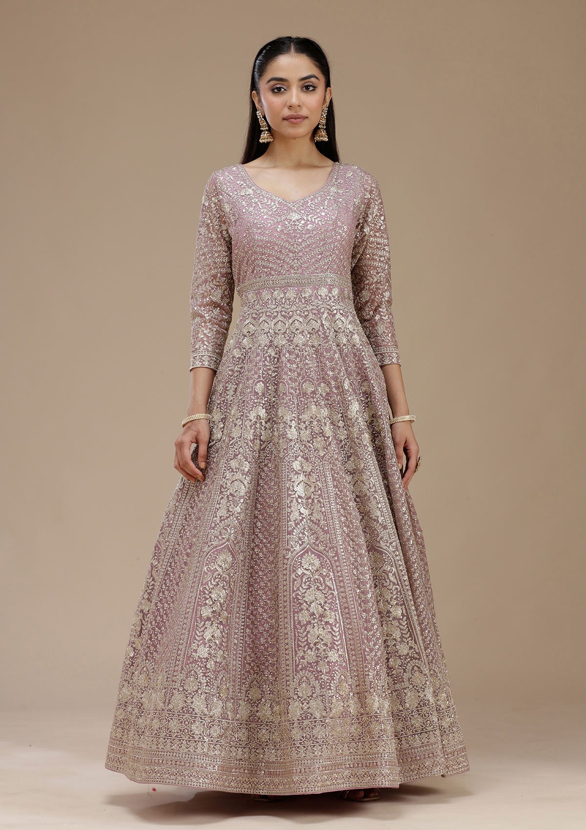 Mauve Salwar Suit in Net fabric. The Salwar Suit is embellished with Zardozi (Gold) embroidery. Accompanied with a bottom and dupatta. Comes with the Koskii promise of premium quality.