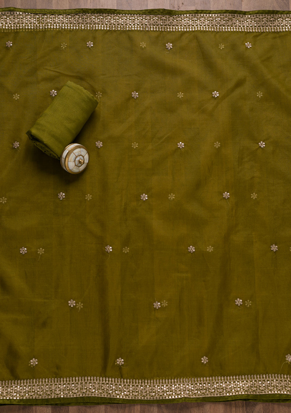 Mehendi Salwar Suit in Tissue fabric. The Salwar Suit is embellished with Printed embroidery. Accompanied with a bottom and dupatta. Comes with the Koskii promise of premium quality.