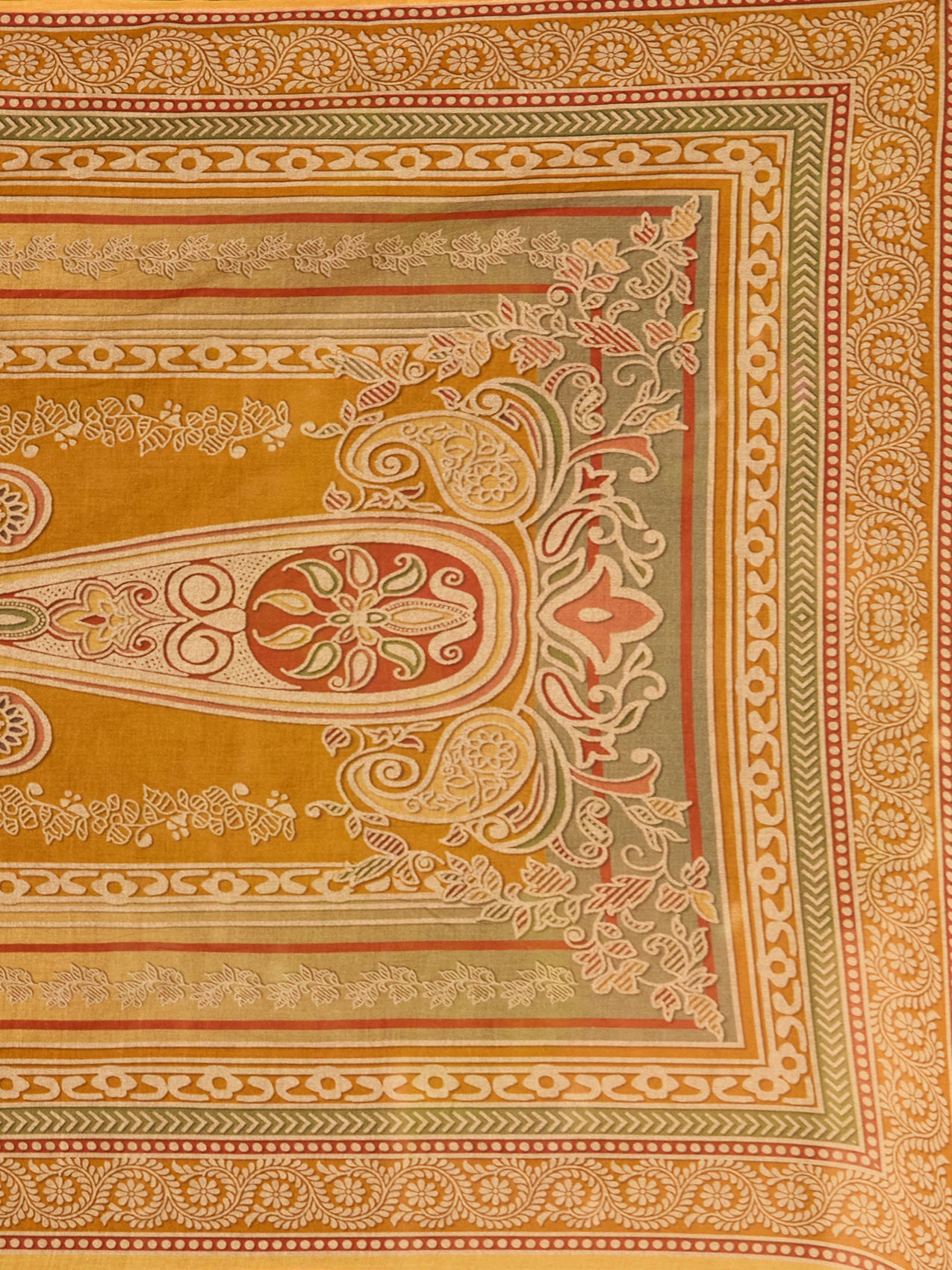 Mustard Yellow Salwar Suit in Chanderi fabric. The Salwar Suit is embellished with Cutdana embroidery. Accompanied with a bottom and dupatta. Comes with the Koskii promise of premium quality.