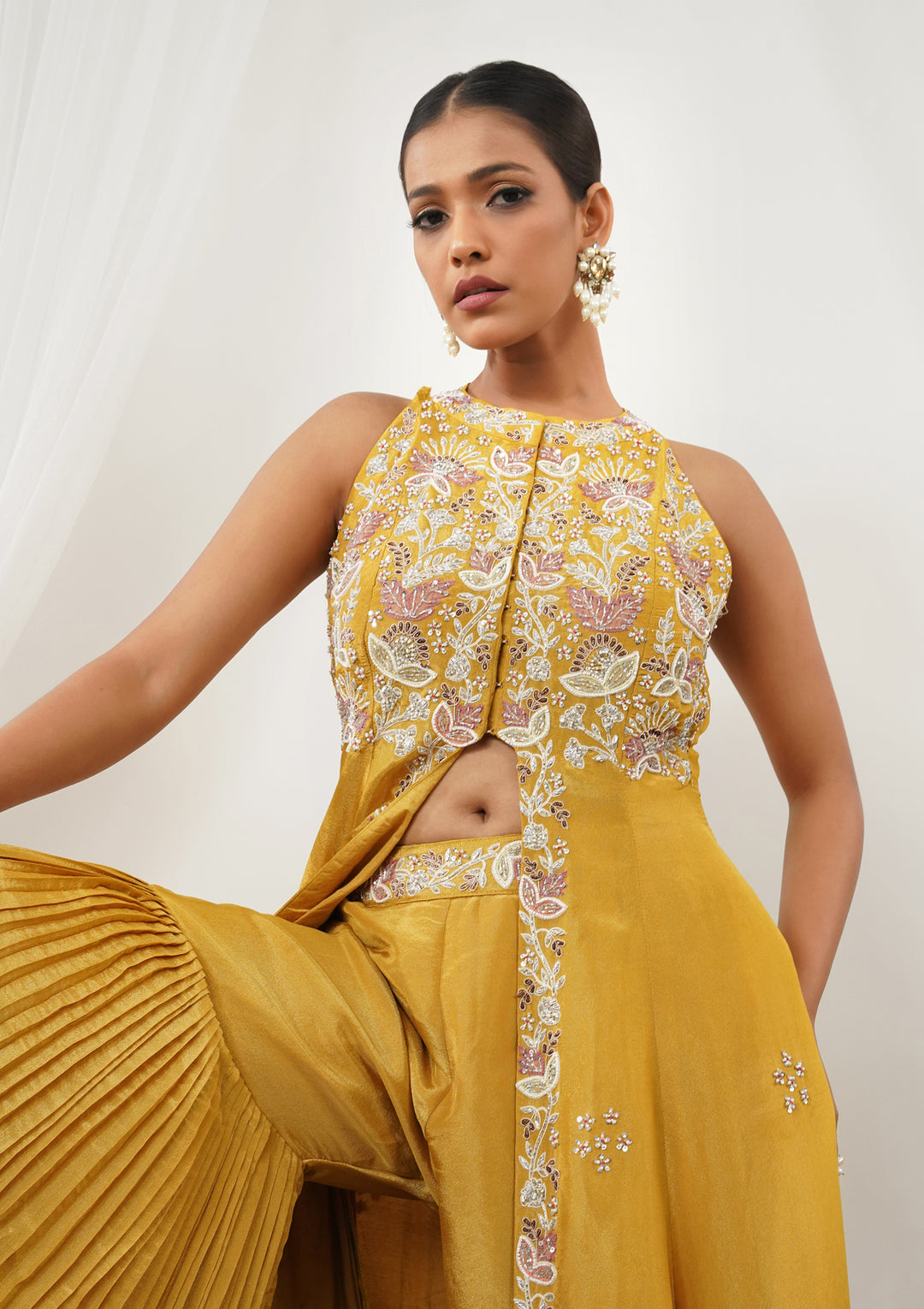 Mustard Zariwork Semi Crepe Readymade Salwar Suit