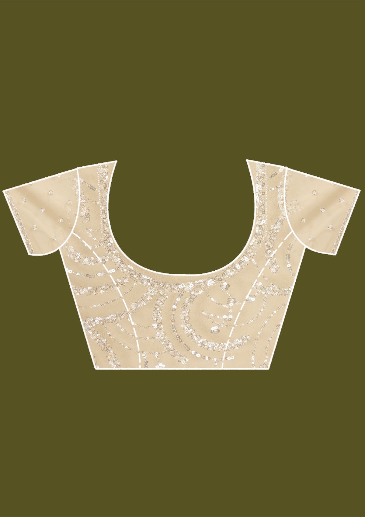 Off White Saree in Net fabric. The Saree is elevated with Sequins embroidery. It comes with an Unstitched blouse. Comes with the Koskii promise of premium quality.