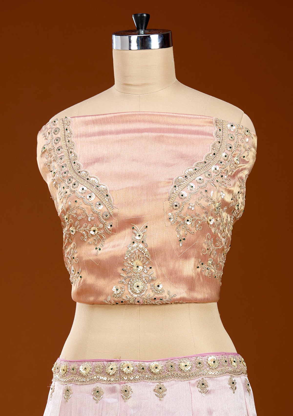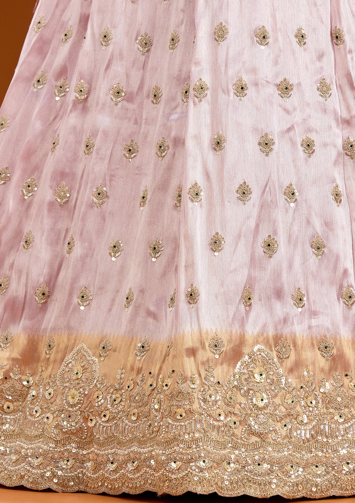 Onion Pink Stonework (Gold) Tissue Readymade Lehenga