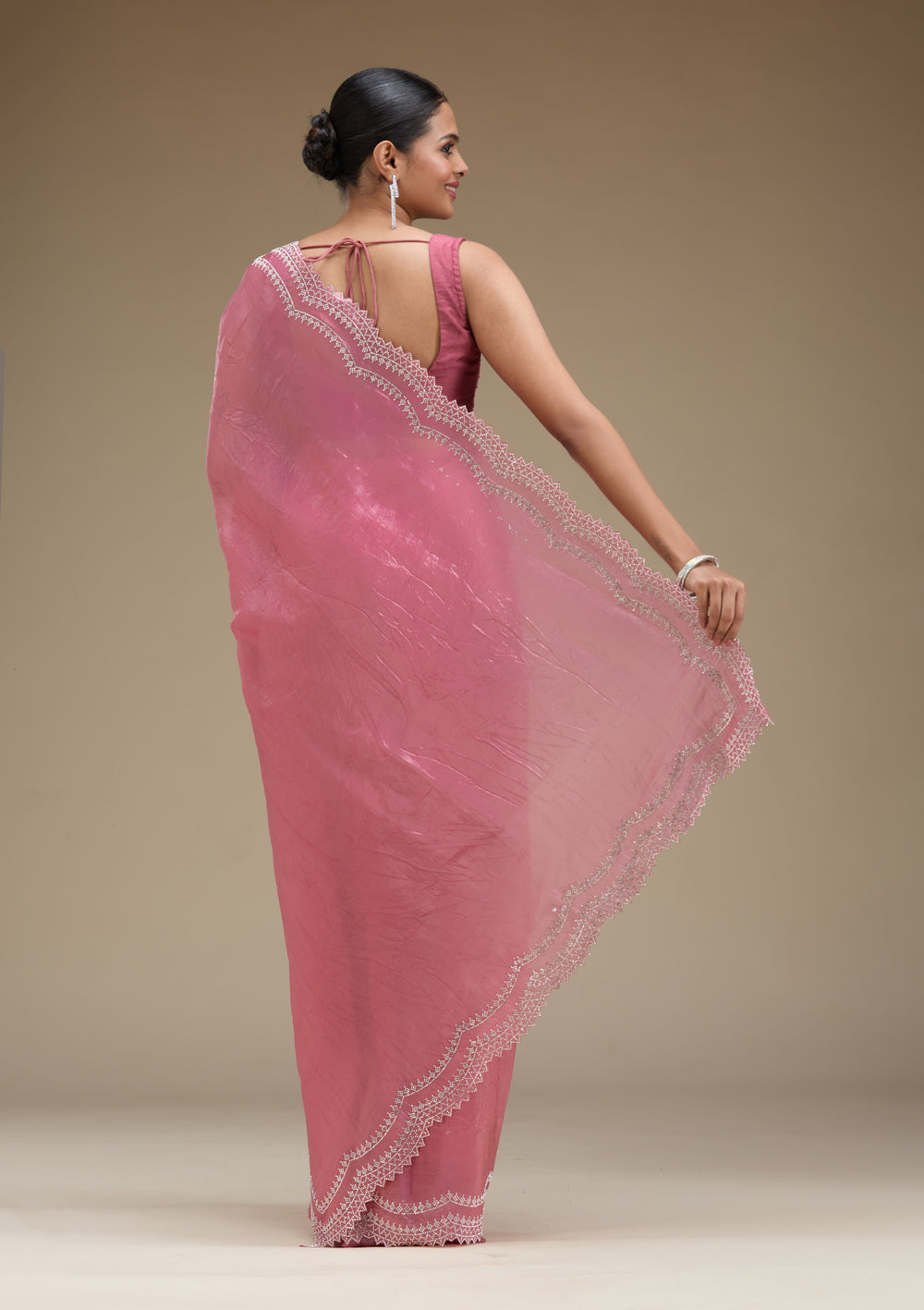 Onion Pink Saree in Tissue fabric. The Saree is elevated with Prints . It comes with an Unstitched blouse. Comes with the Koskii promise of premium quality.