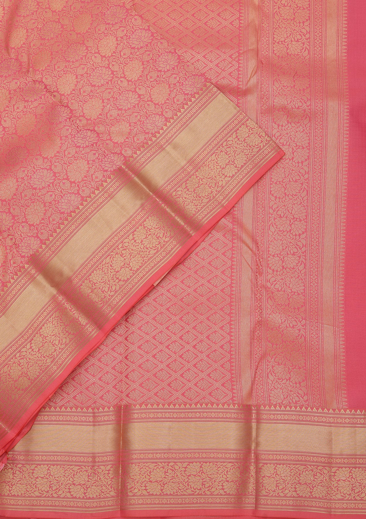 Onion Pink Silk Saree in Pure Silk fabric. The Silk Saree is elevated with Zariwork embroidery. It comes with an Unstitched blouse. Comes with the Koskii promise of premium quality.