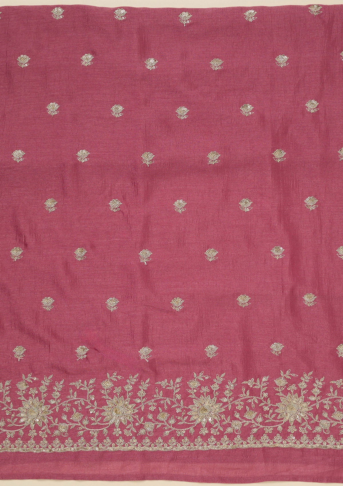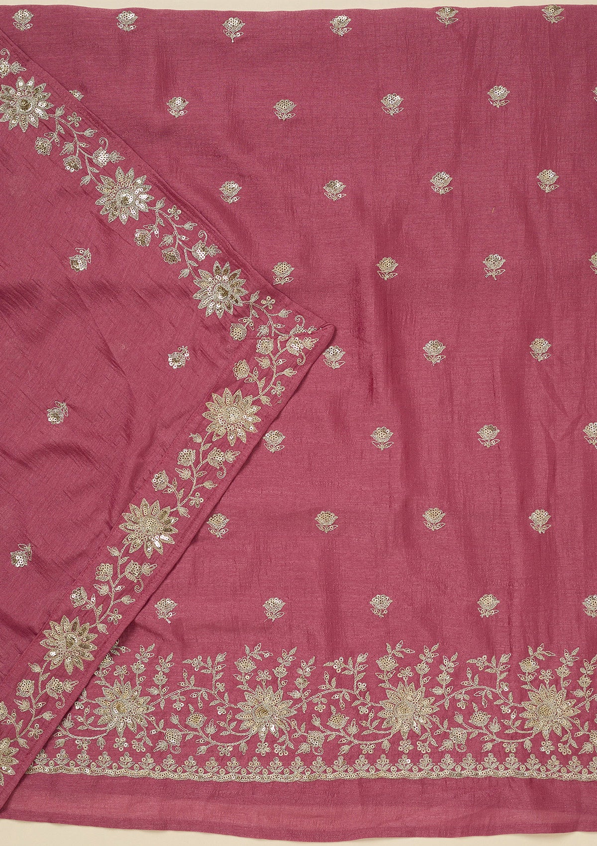 Onion Pink Zariwork (Silver) Soft Raw Silk Unstitched Salwar Suit