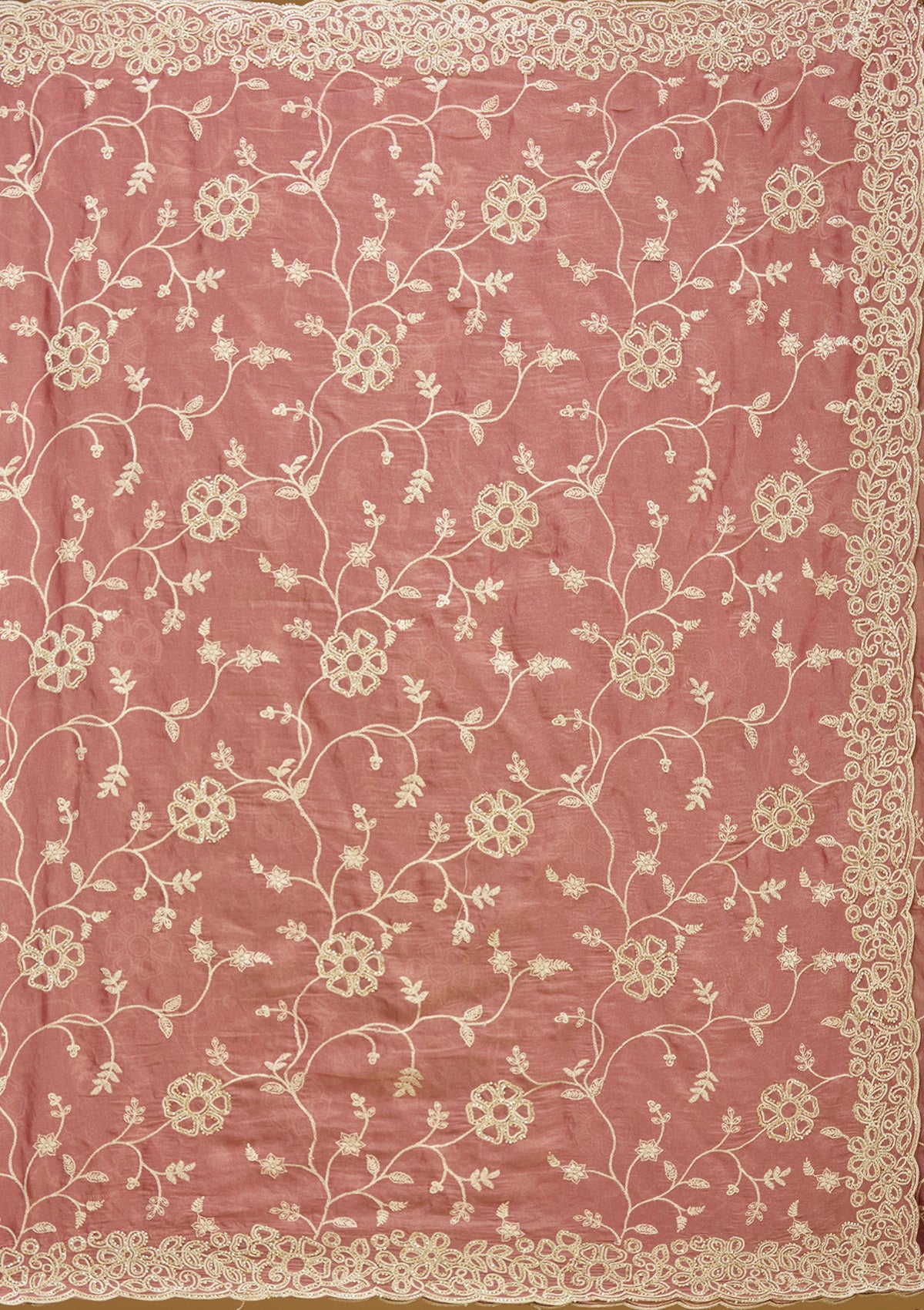 Onion Pink Saree in Tissue fabric. The Saree is elevated with Zariwork (Silver) embroidery. It comes with an Unstitched blouse. Comes with the Koskii promise of premium quality.