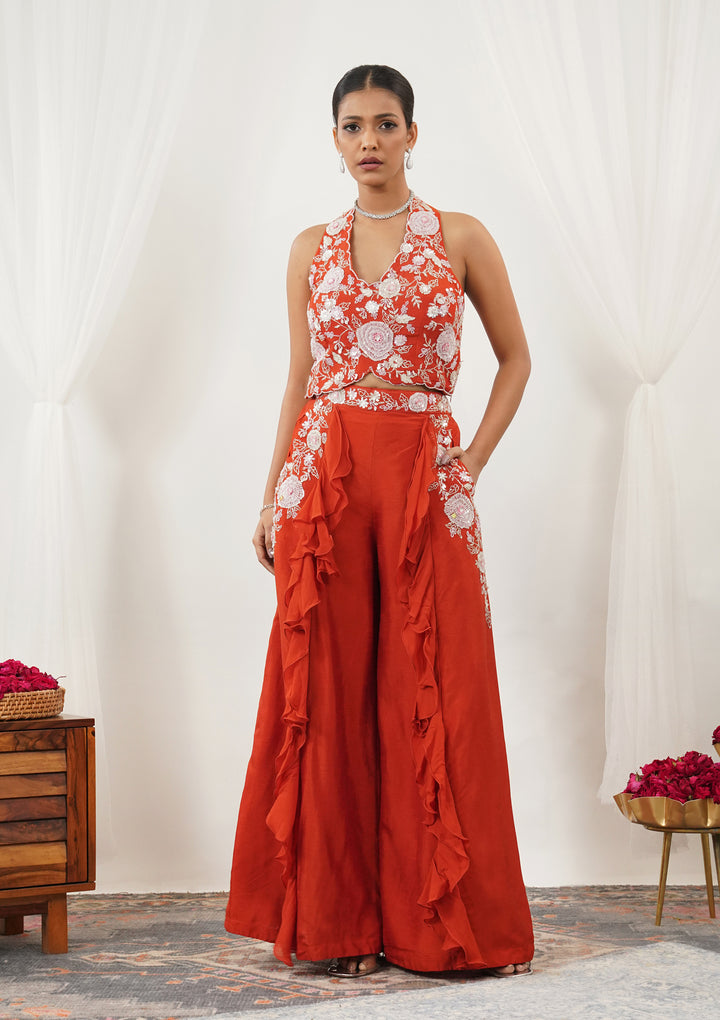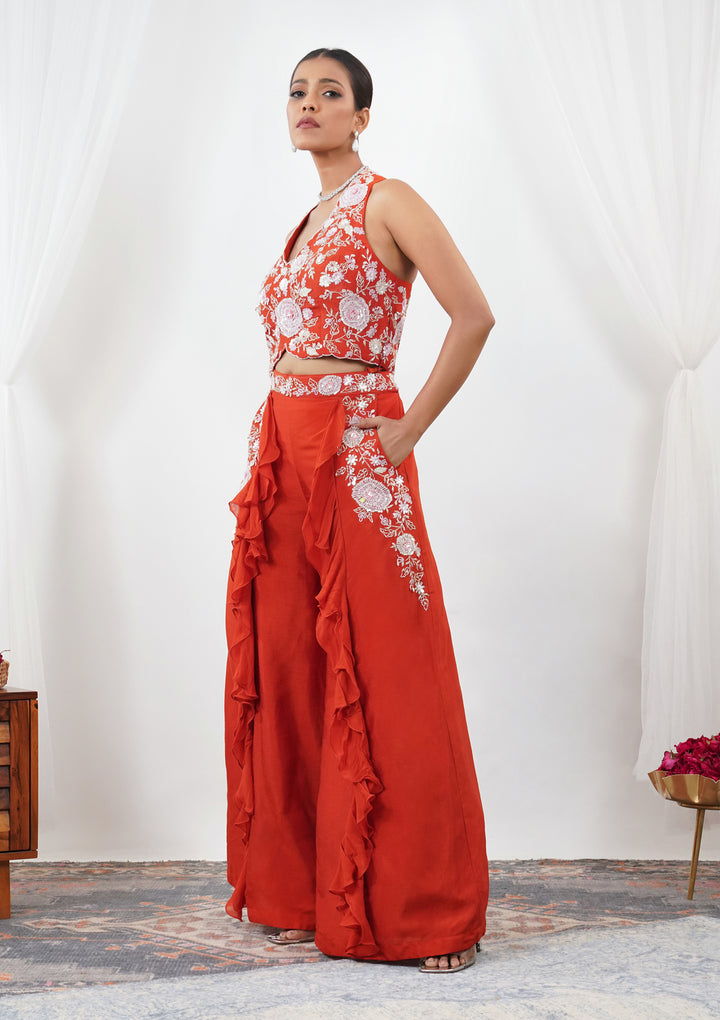 Orange Salwar Suit in Semi Crepe fabric The Salwar Suit is embellished with Threadwork embroideryComes with the Koskii promise of premium quality.