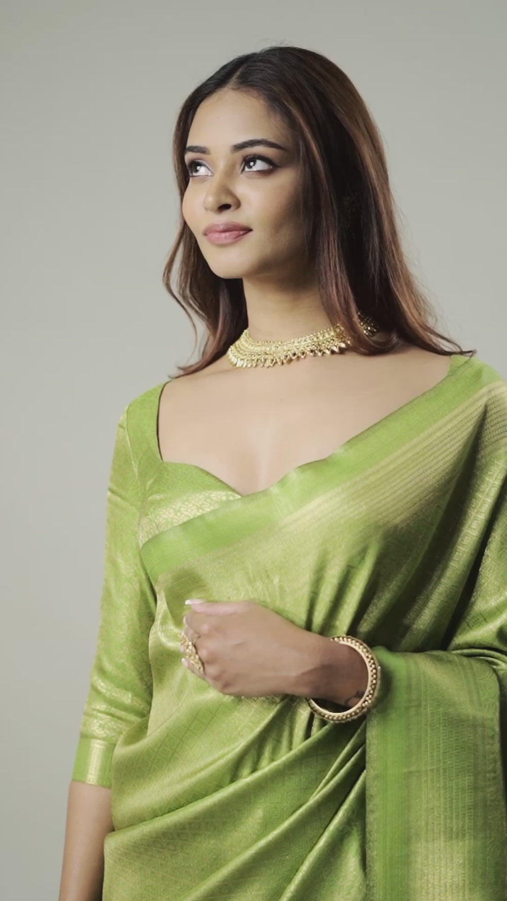 Parrot Green Saree in Soft Silk fabric. The Saree is elevated with Plain embroidery. It comes with an Unstitched blouse. Comes with the Koskii promise of premium quality.