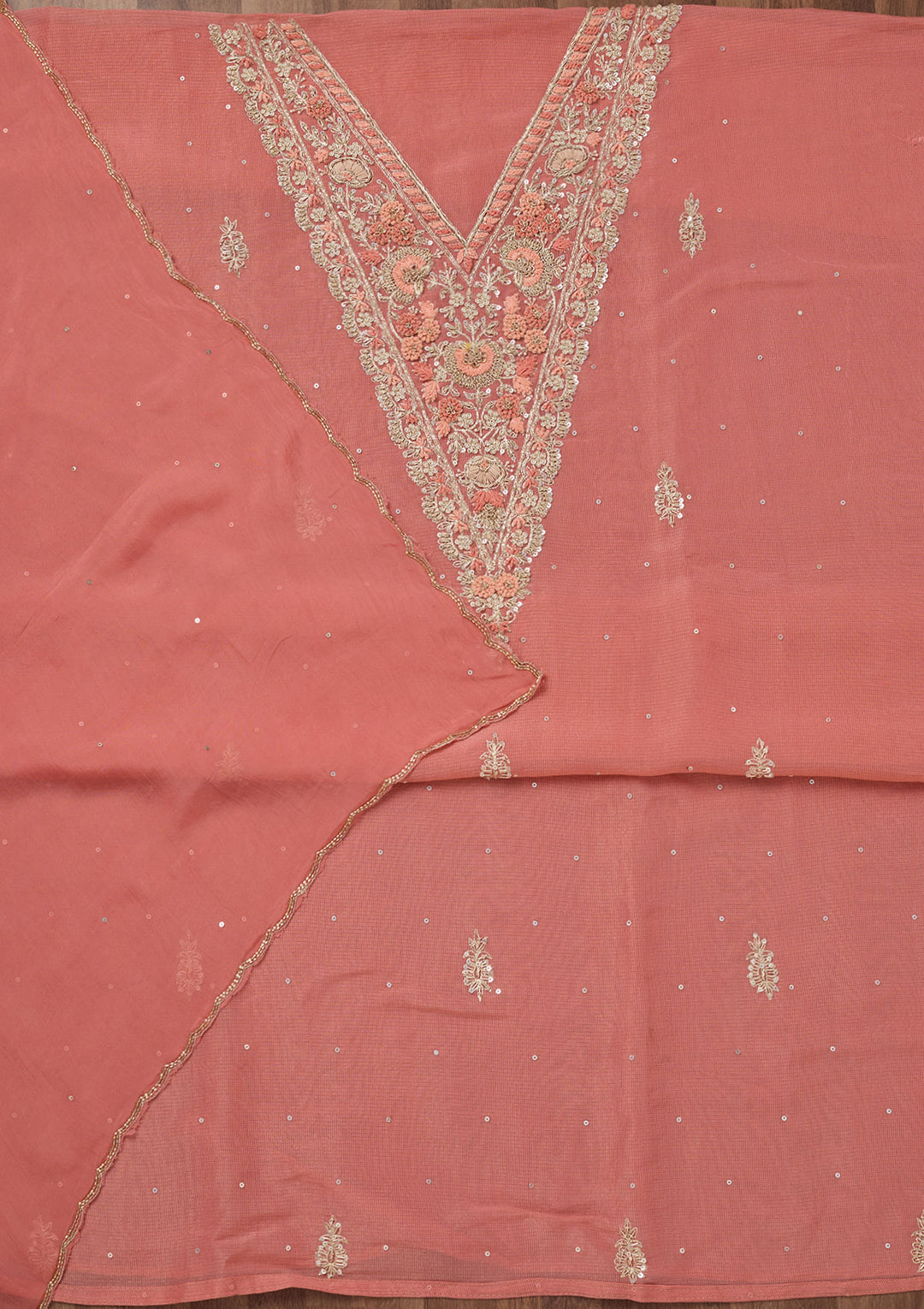 Peach Salwar Suit in Tissue fabric The Salwar Suit is embellished with Stonework embroidery Accompanied with a bottom and dupatta Comes with the Koskii promise of premium quality.