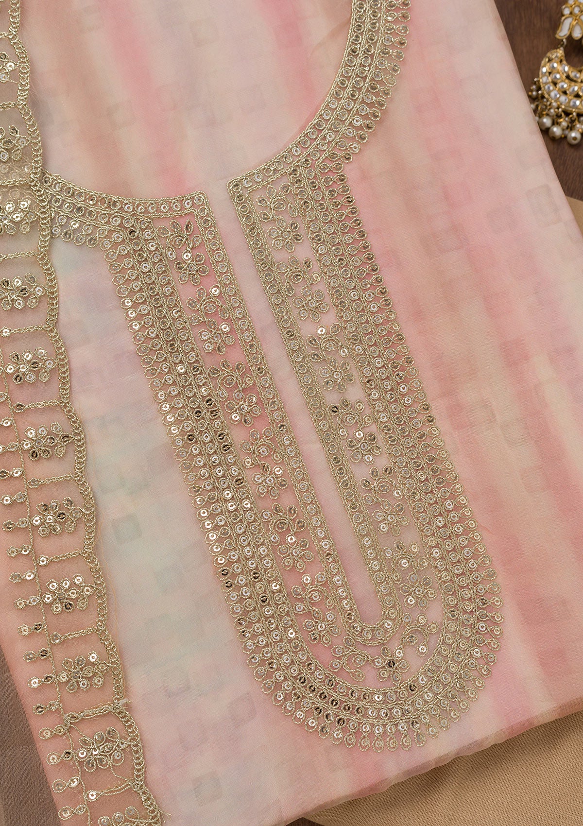 Peach Zariwork Semi Crepe Unstitched Salwar Suit