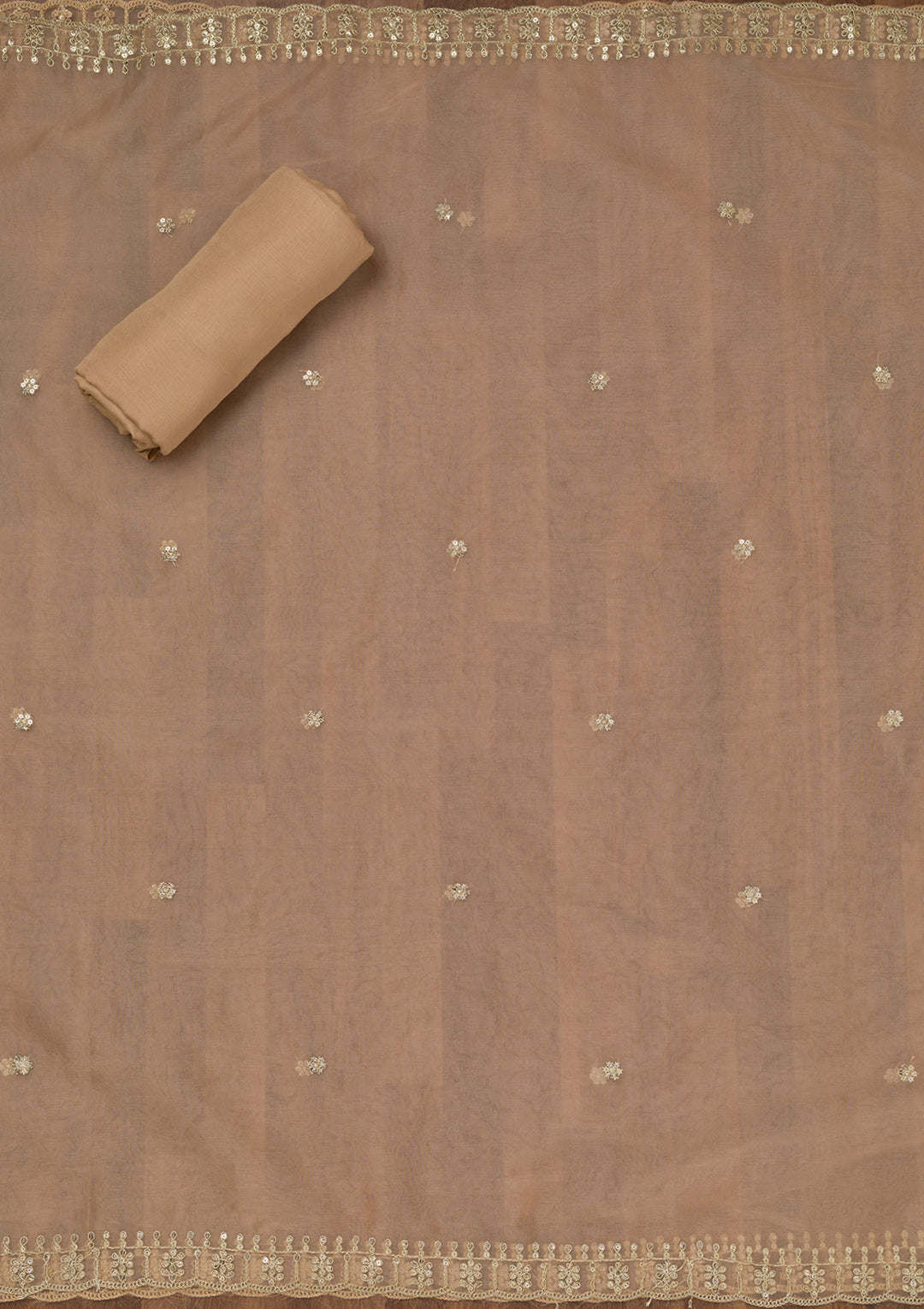 Peach Salwar Suit in Semi Crepe fabric. The Salwar Suit is embellished with Zariwork embroidery. Accompanied with a bottom and dupatta. Comes with the Koskii promise of premium quality.