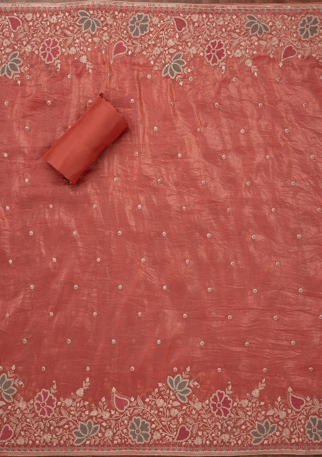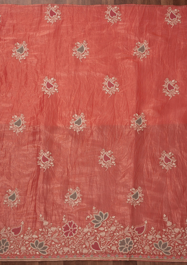 Peach Zariwork Semi Crepe Unstitched Salwar Suit