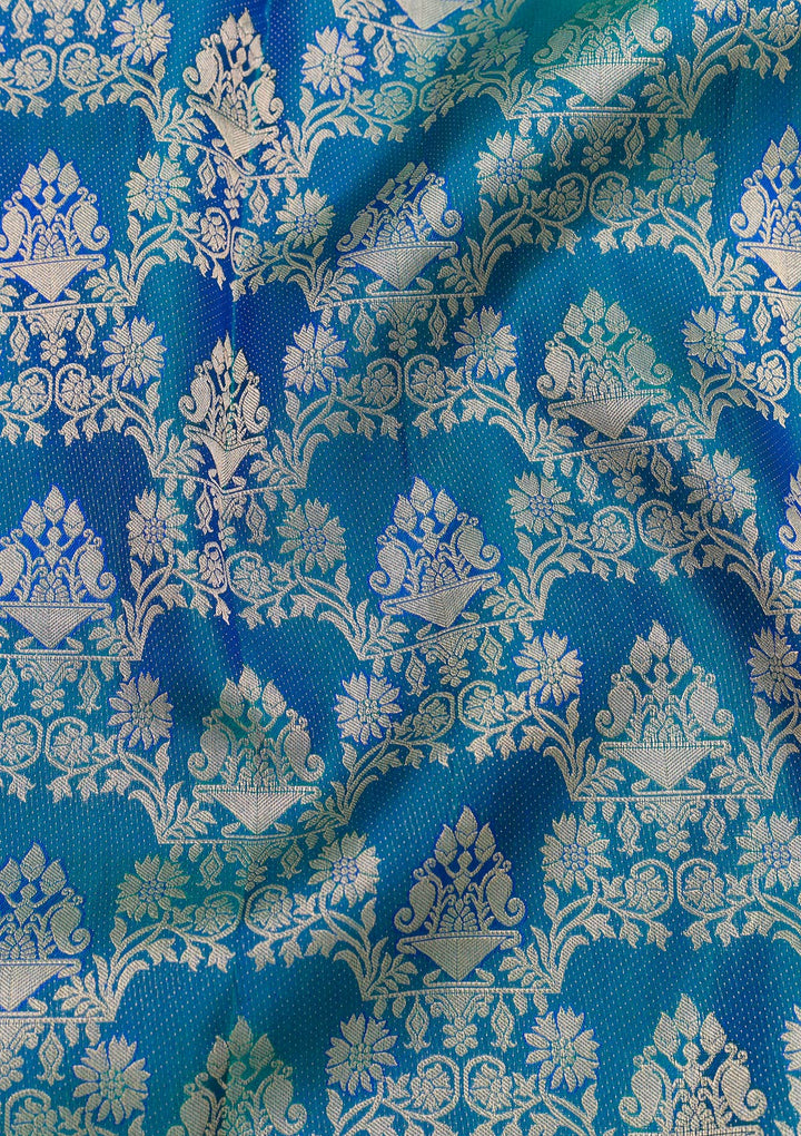 Peacock Blue Zariwork Kanjivaram Pure Silk Saree