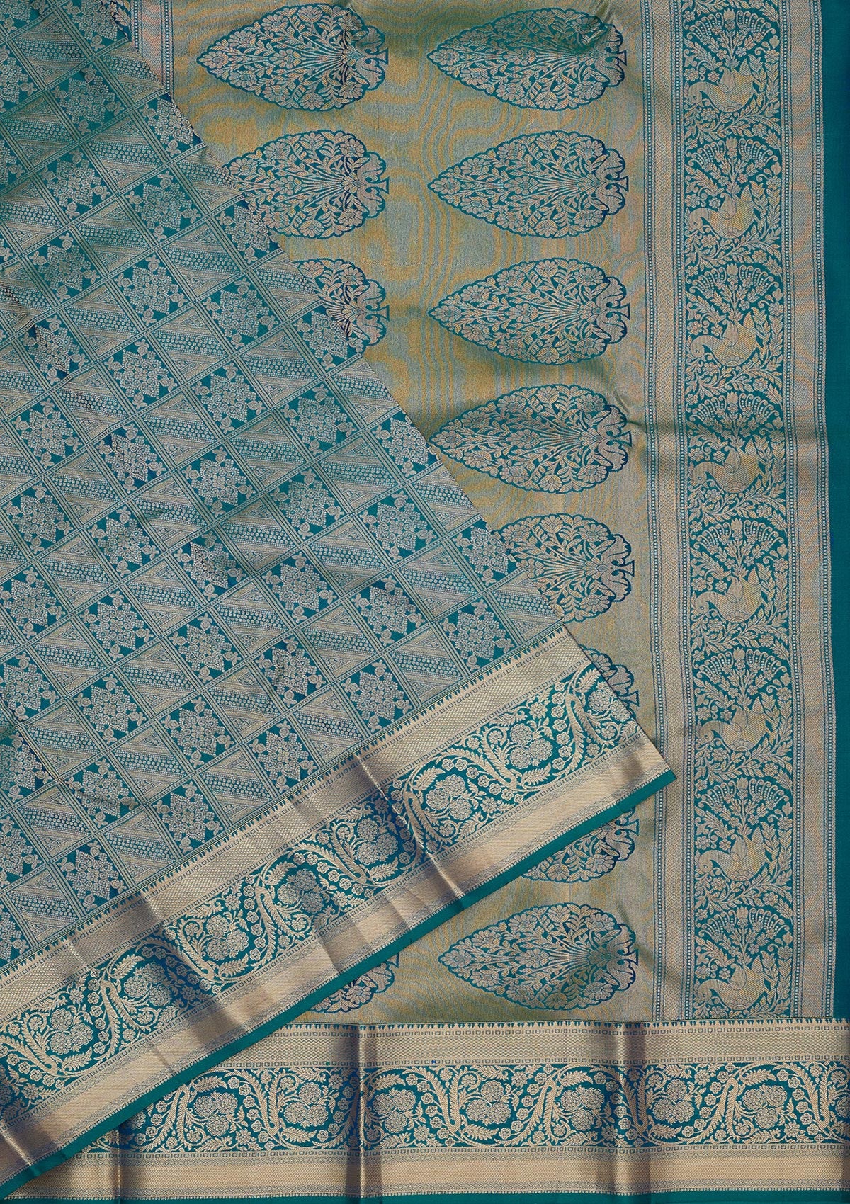 Peacock Green Saree in Pure Silk fabric The Saree is elevated with Zariwork embroidery It comes with an Unstitched blouse Comes with the Koskii promise of premium quality.