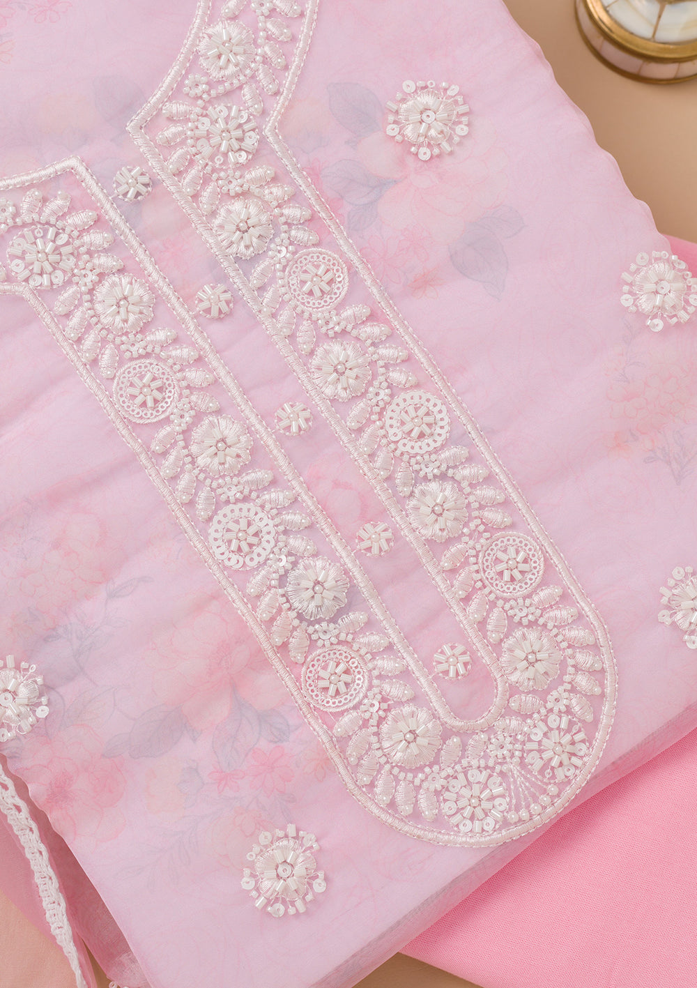 Pink Printed Tissue Unstitched Salwar Suit