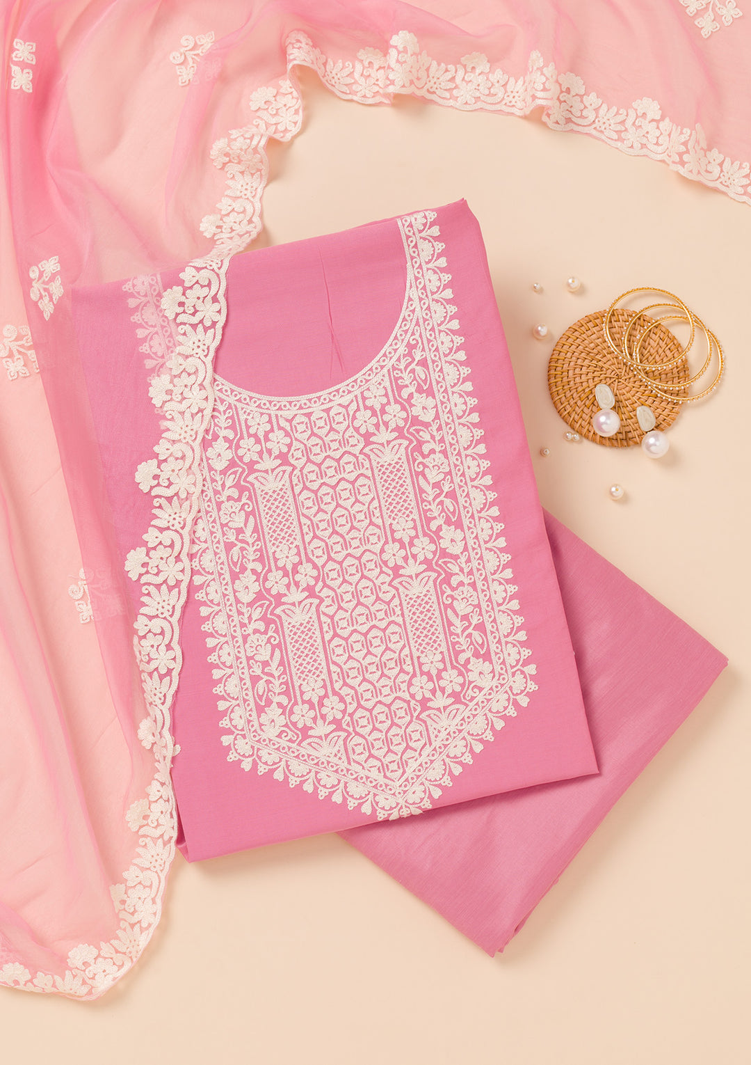 Pink Threadwork Semi Crepe Unstitched Salwar Suit