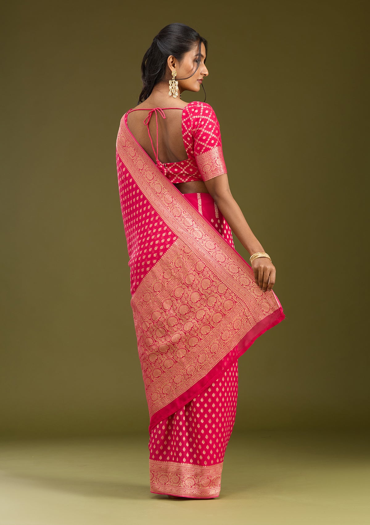Pink Zariwork Georgette Silk Saree