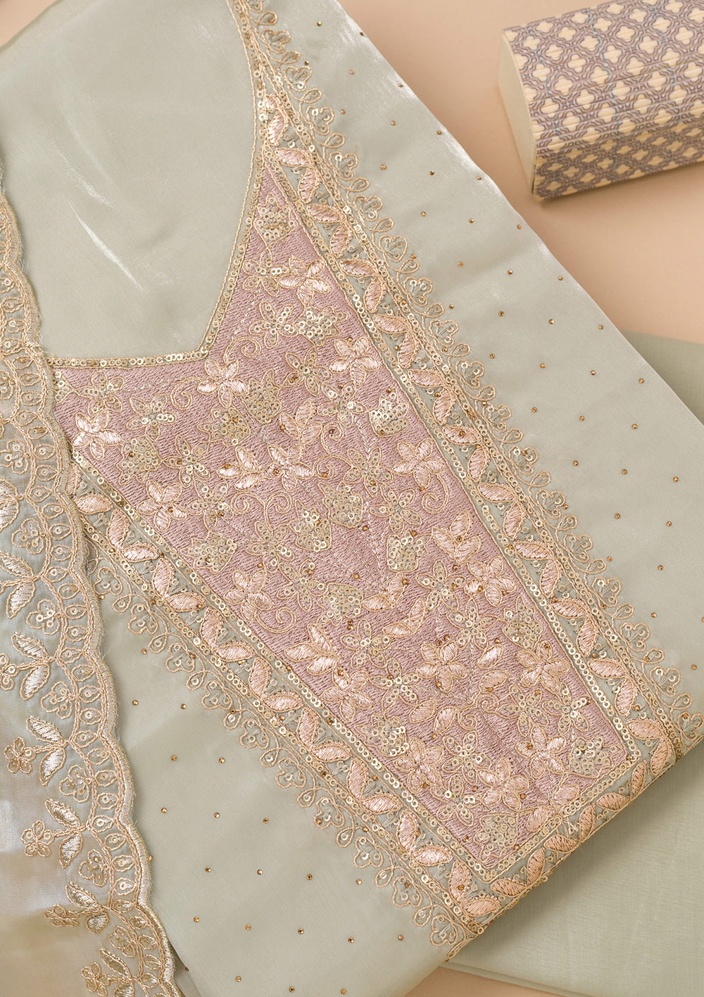Pista Green Zariwork Tissue Unstitched Salwar Suit