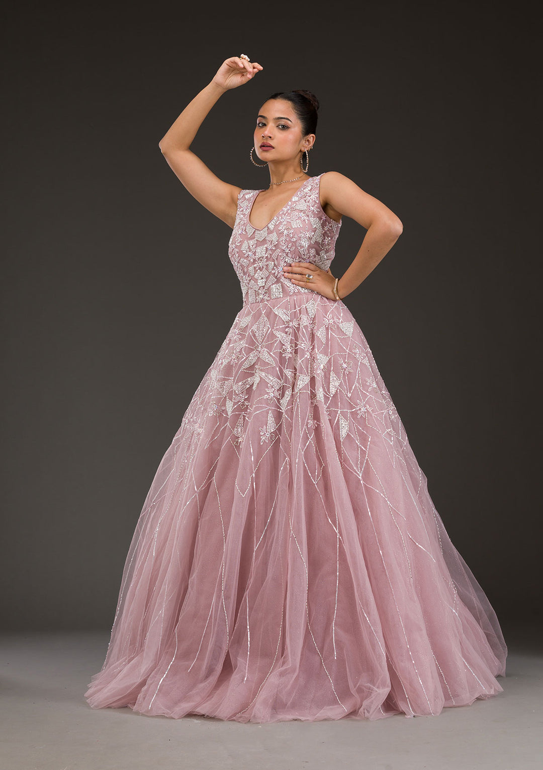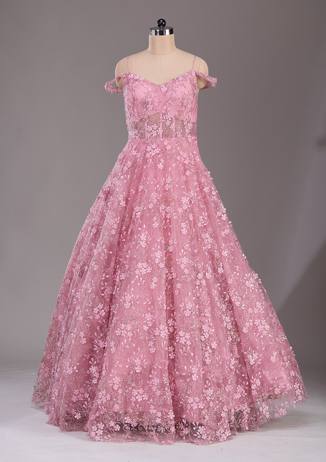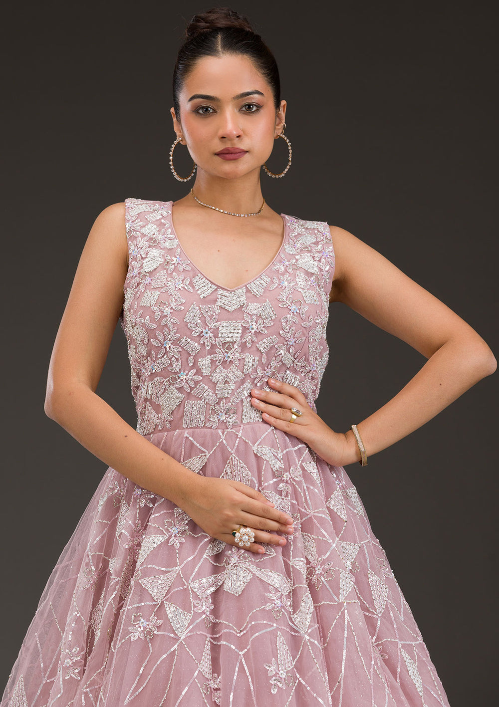 Pink Sequins Net Readymade Gown ₹ 14,990