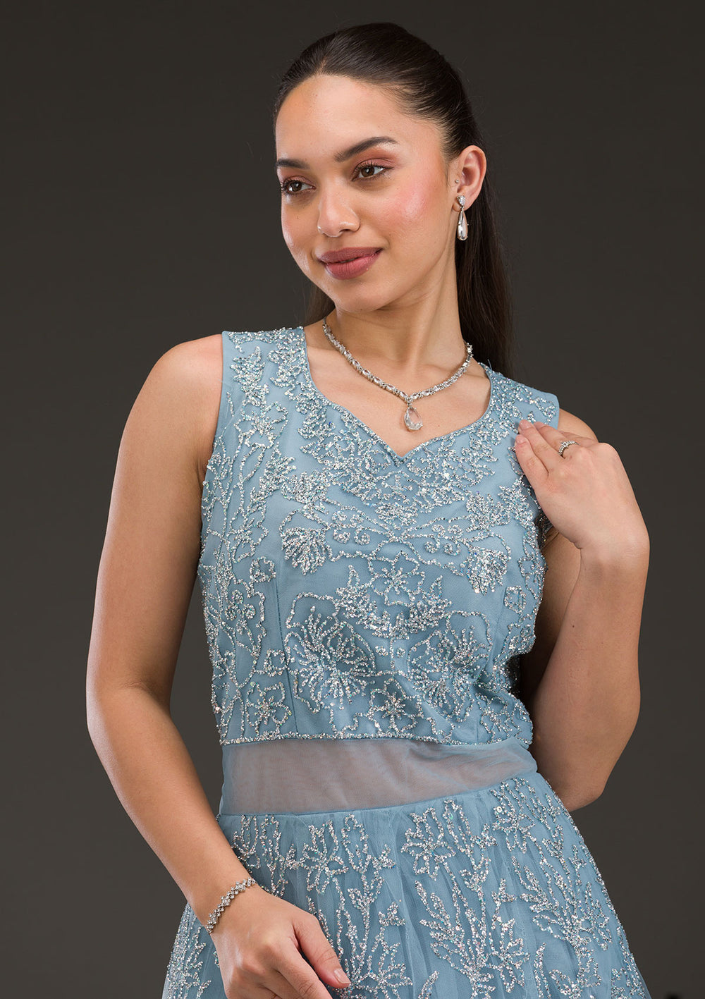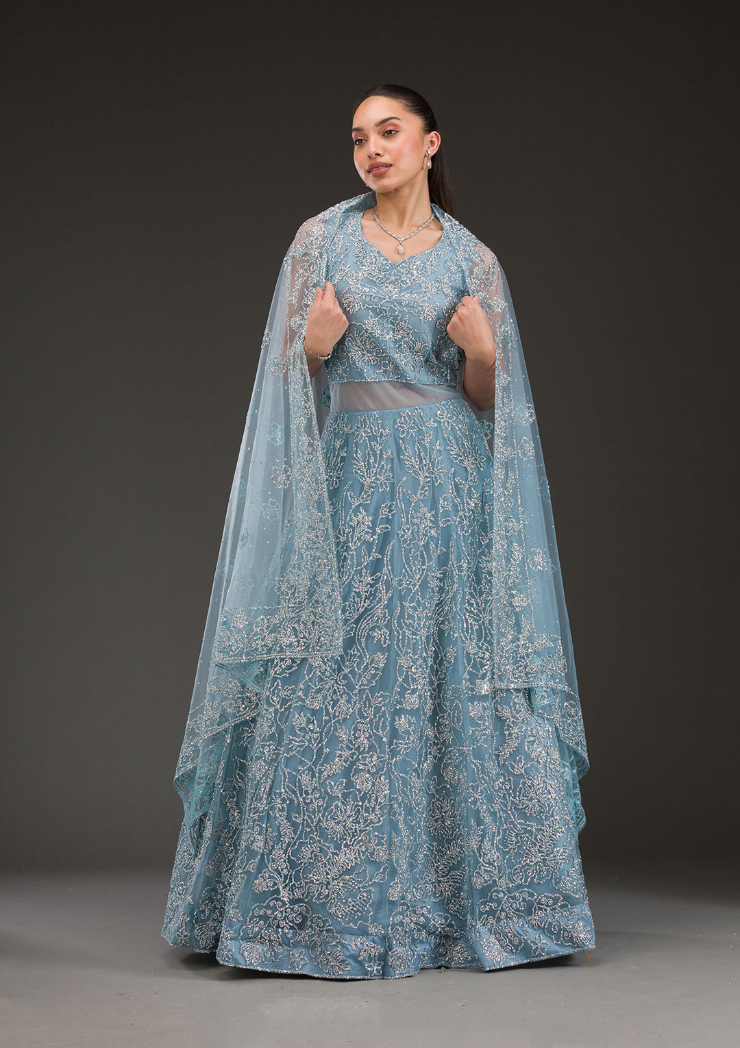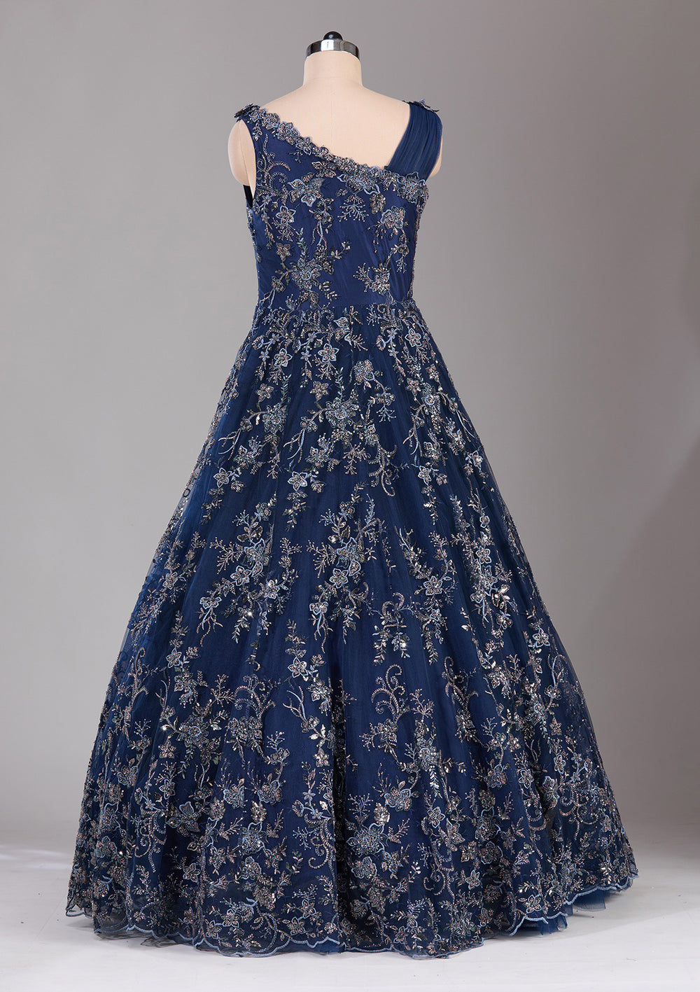 Navy Blue Cutdana Net Readymade Lehenga ₹ 31,493
