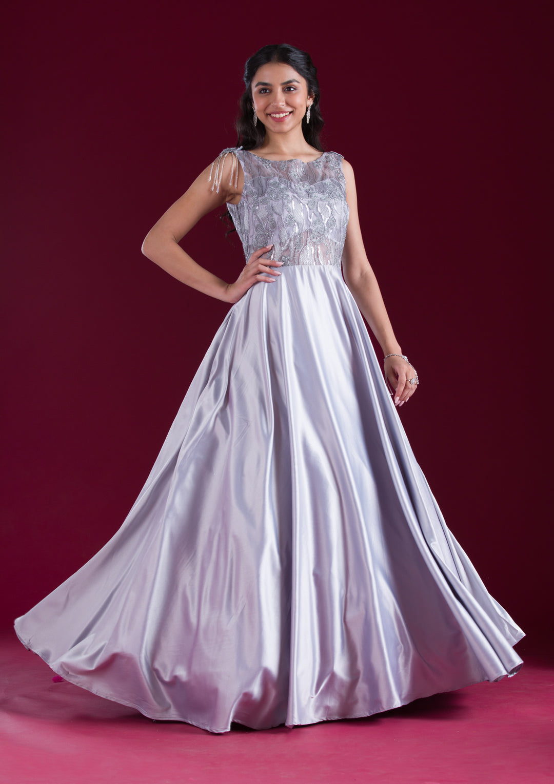 • Smooth and shiny, satin gowns are ideal for evening events. They have a glamorous and polished look.