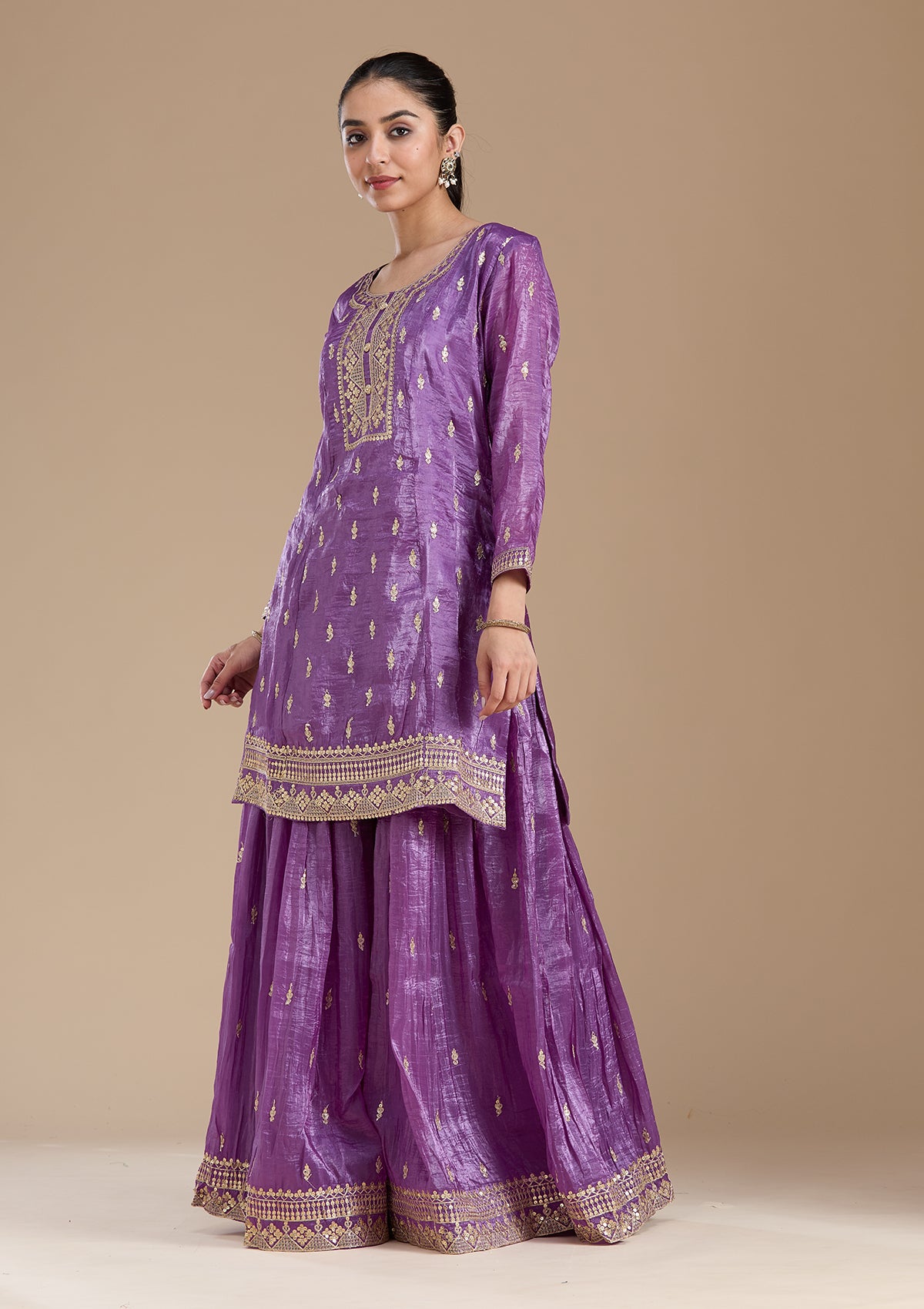 Purple Zariwork (Gold) Soft Raw Silk Readymade Salwar Suit