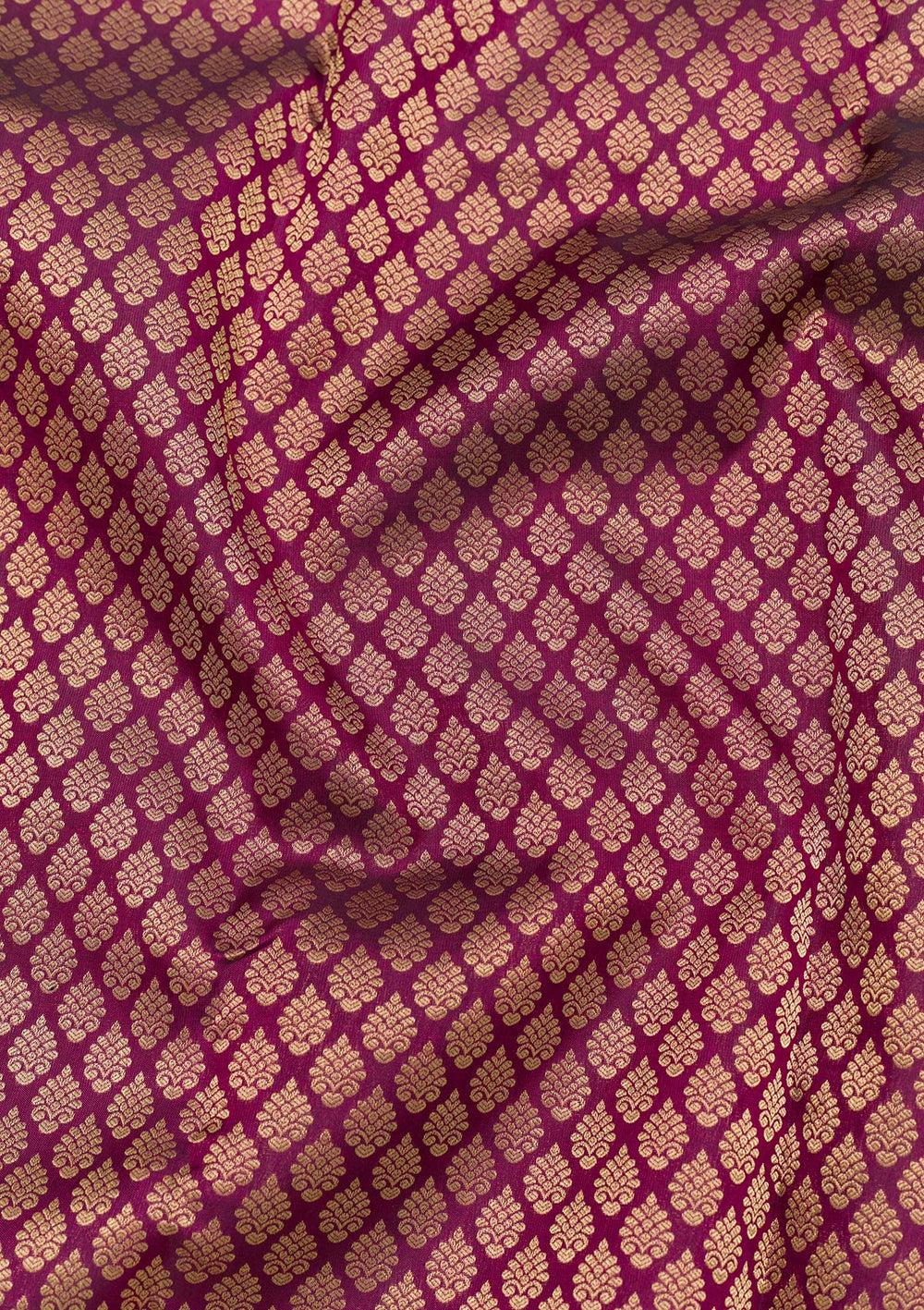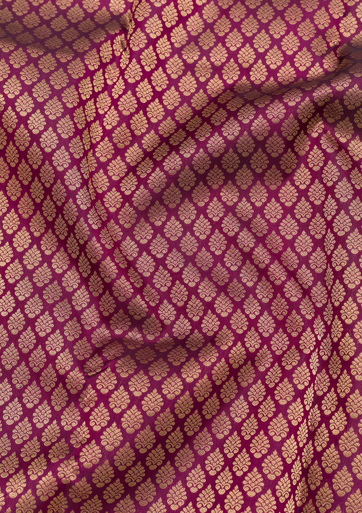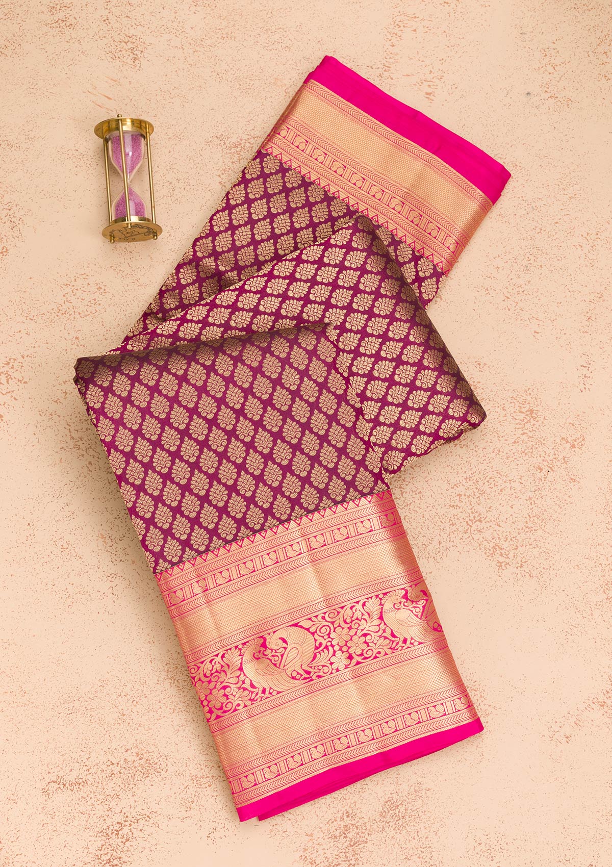 Purple Saree in Pure Silk fabric. The Saree is elevated with Zariwork embroidery. It comes with an Unstitched blouse. Comes with the Indian Silk Mark certification.