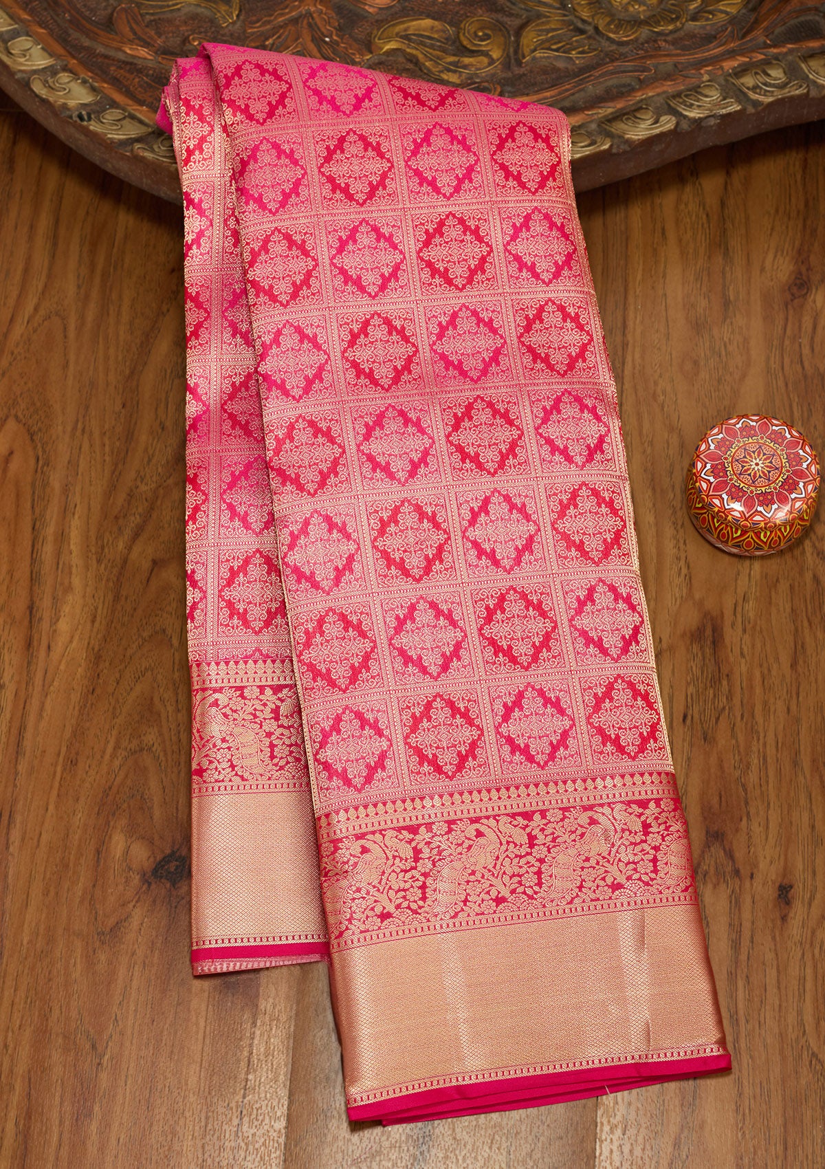 Rani Pink Zariwork (Gold) Silk Saree