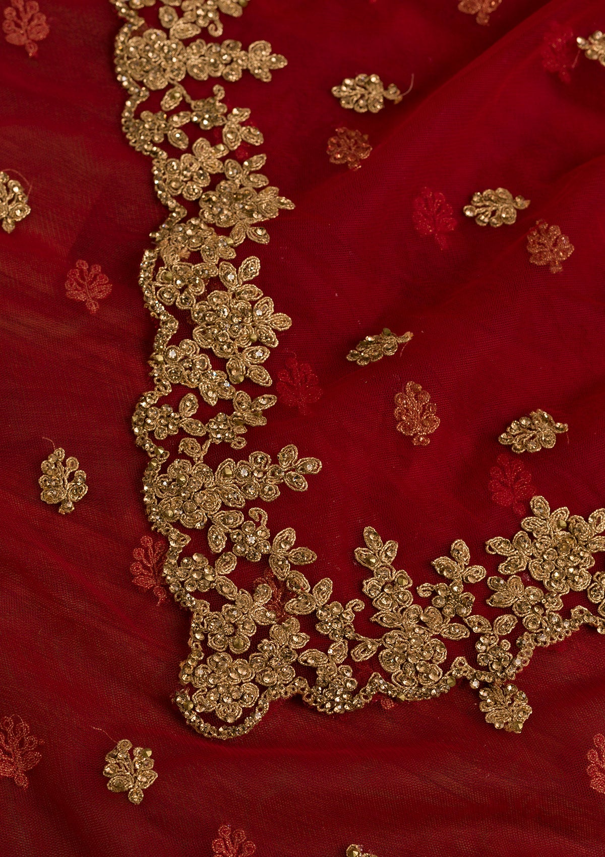 Red Dupatta in Net fabric. The Dupatta is elevated with Stonework embroidery. Comes with the Koskii promise of premium quality.