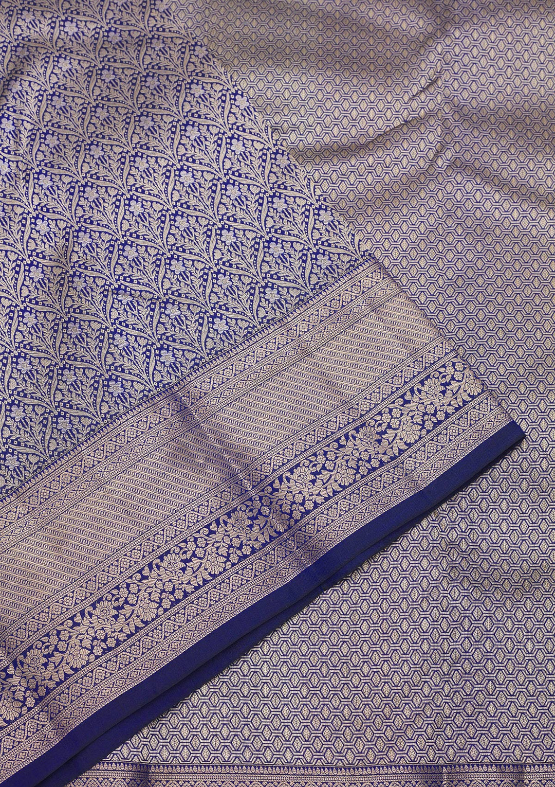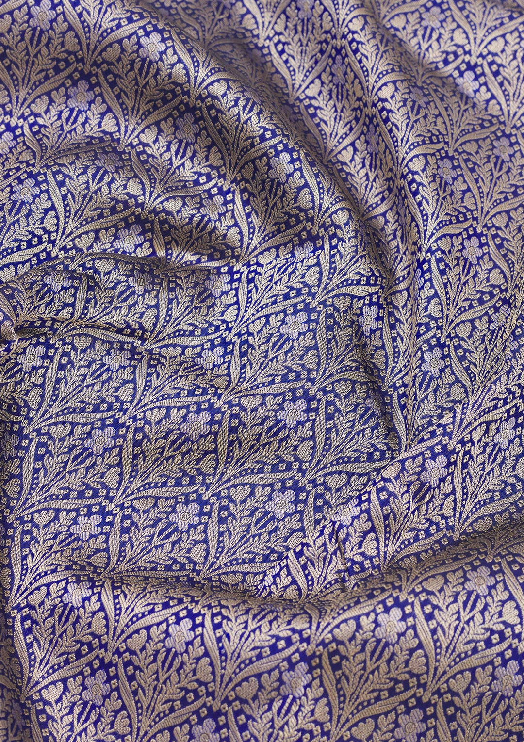Royal Blue Saree in Pure Silk fabric. The Saree is elevated with Zariwork embroidery. It comes with an Unstitched blouse. Comes with the Koskii promise of premium quality.