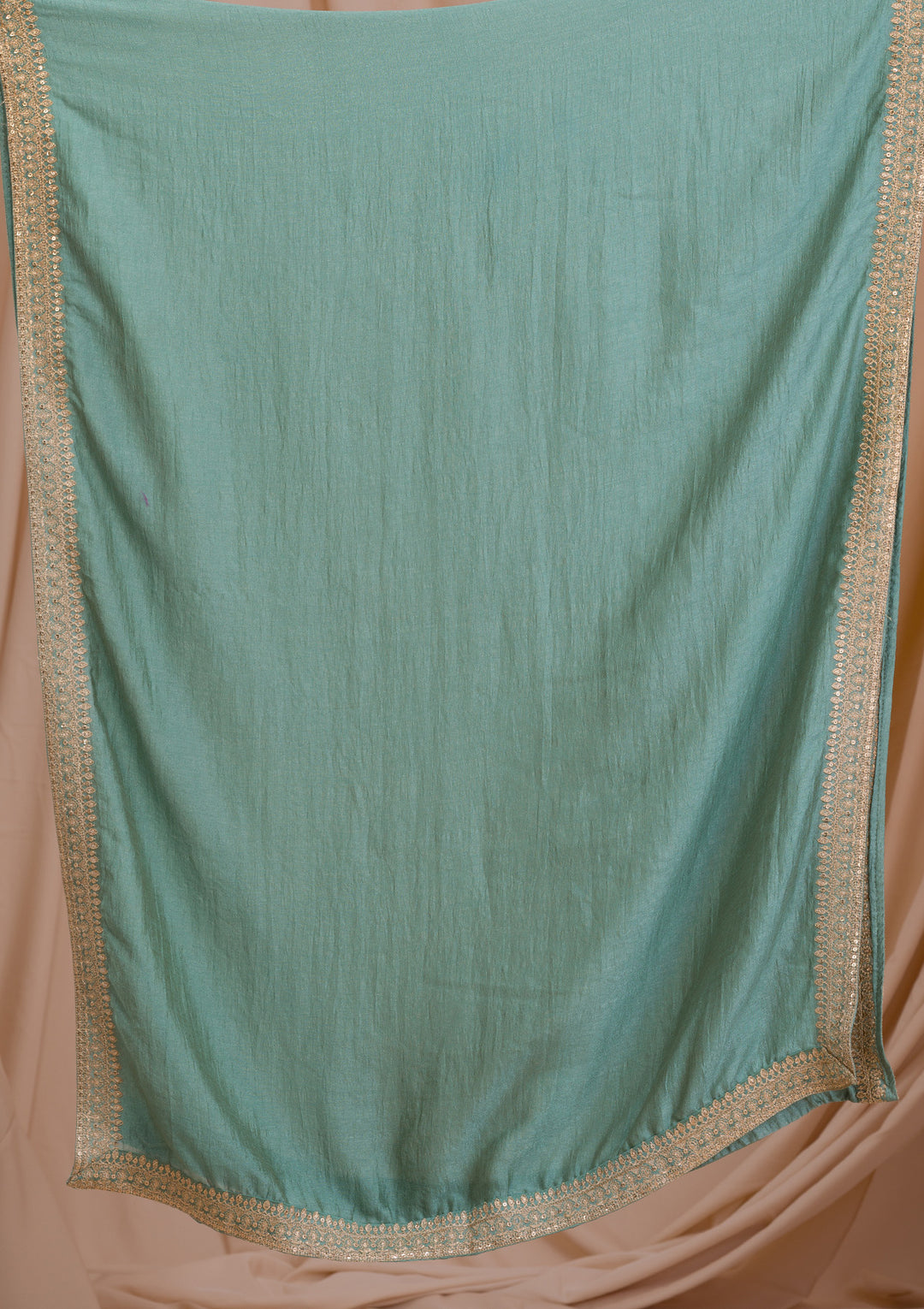 Sea Green Zariwork Art Silk Readymade Salwar Suit