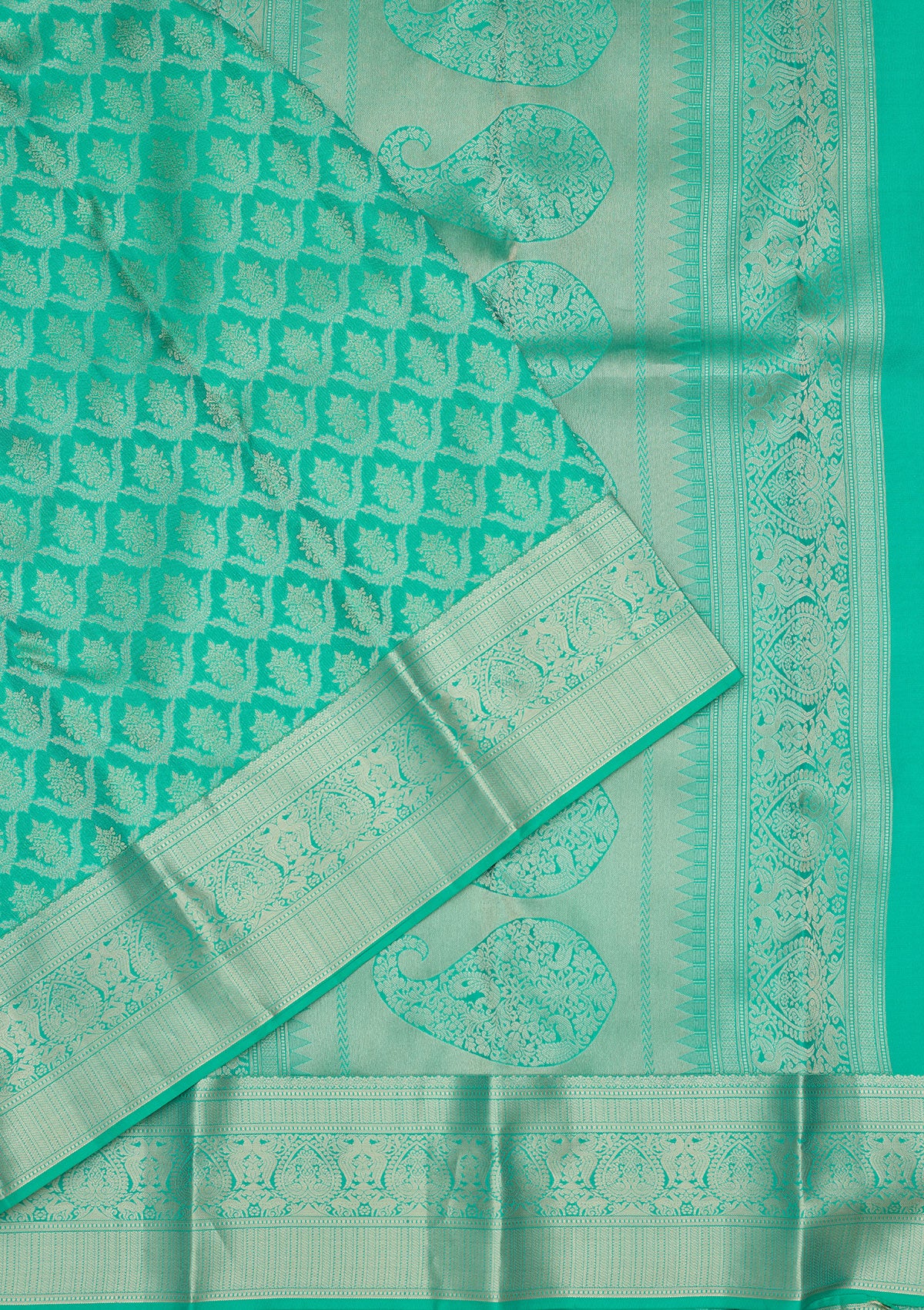 Sky Blue Silk_Saree in Silk fabric. The Silk_Saree is elevated with Zariwork (Gold) embroidery. It comes with an Unstitched blouse. Comes with the Koskii promise of premium quality.