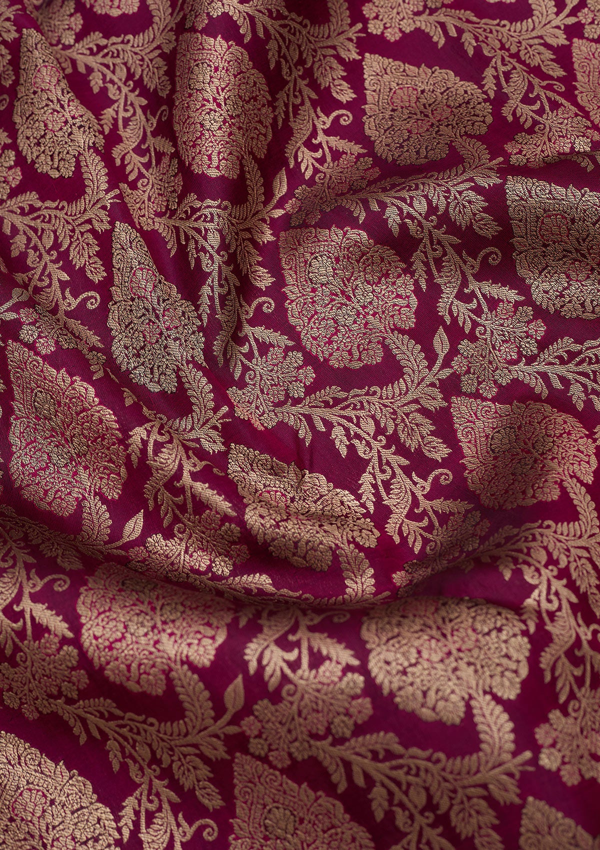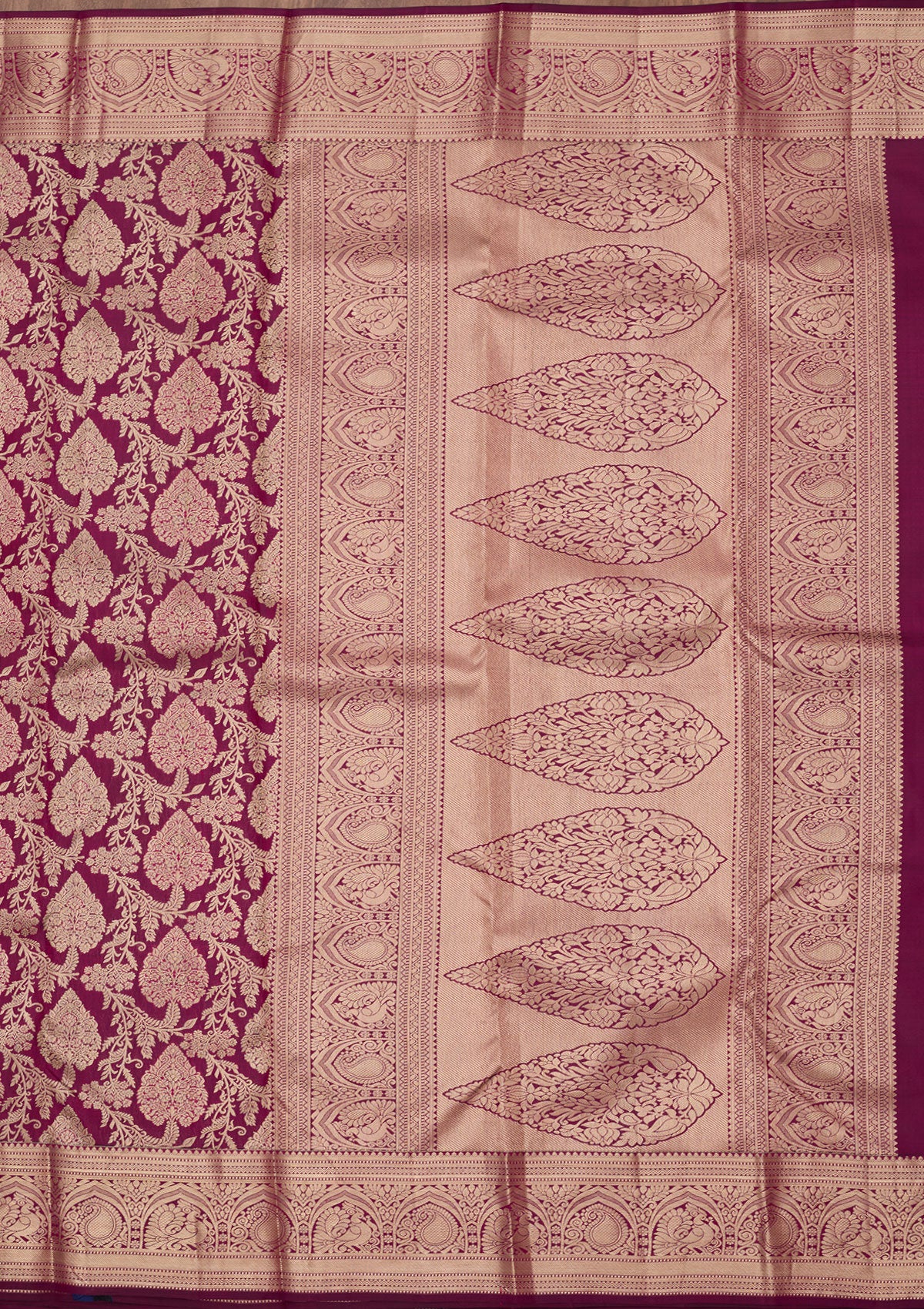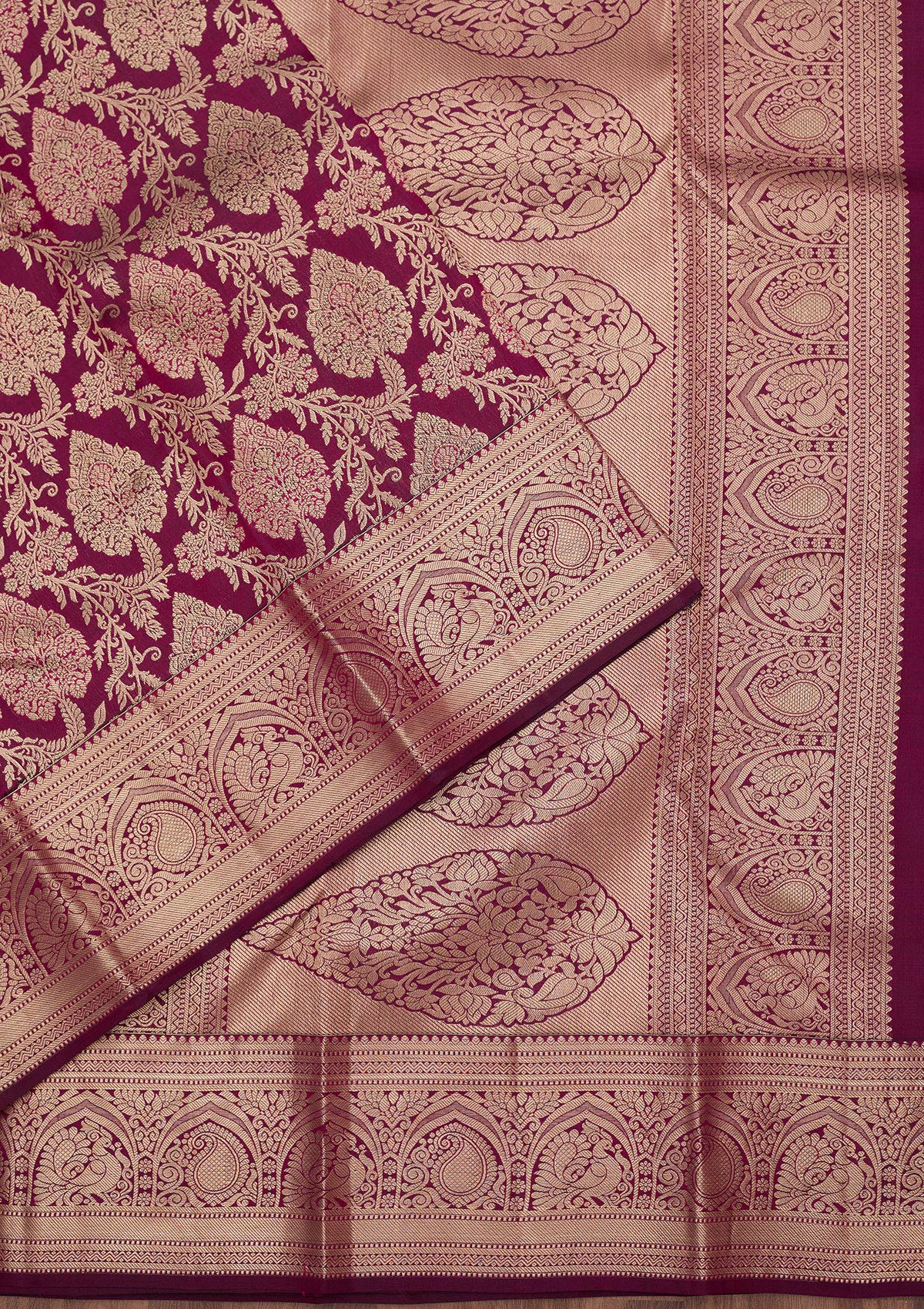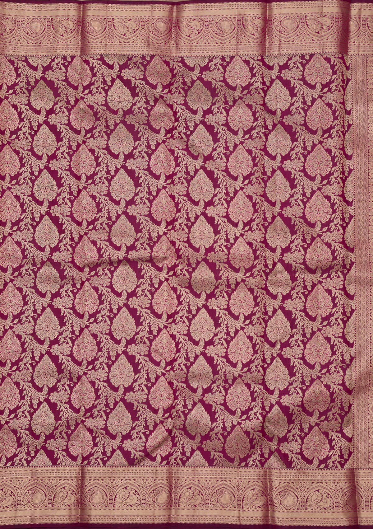 Wine Silk_Saree in Silk fabric. The Silk_Saree is elevated with Zariwork (Silver) embroidery. It comes with an Unstitched blouse. Comes with the Koskii promise of premium quality.