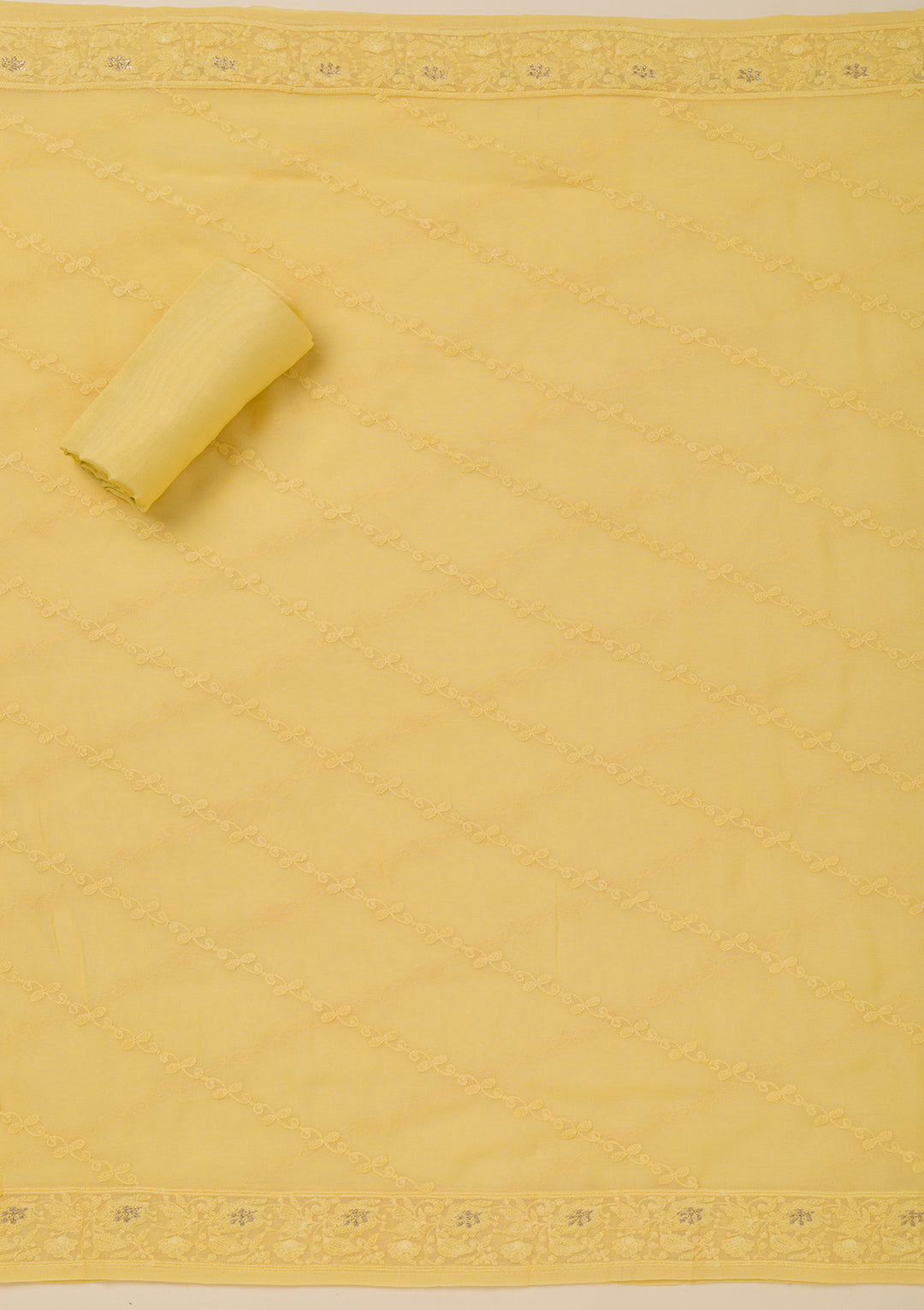 Yellow Threadwork Georgette Unstitched Salwar Suit